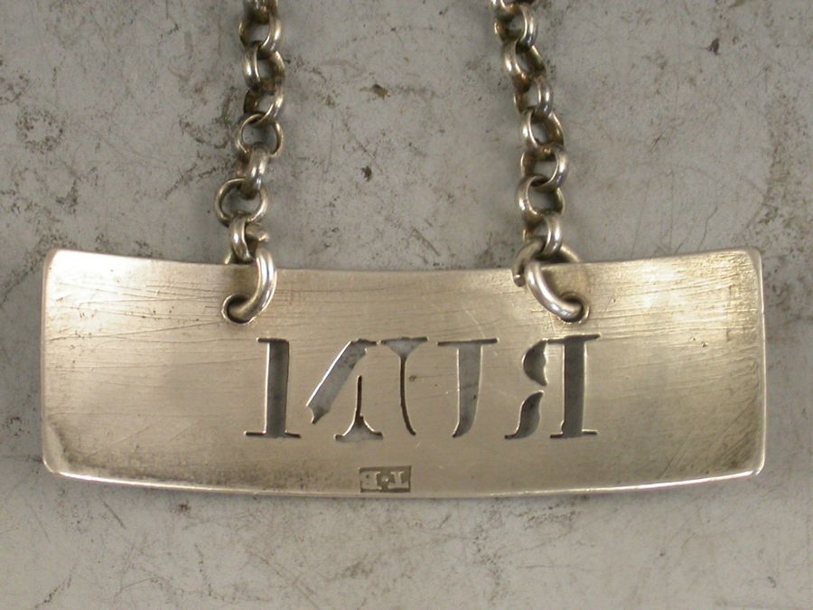 An unusual Georgian silver Wine Label of curved narrow rectangular form with 'crimped' border, pierced for Rum.