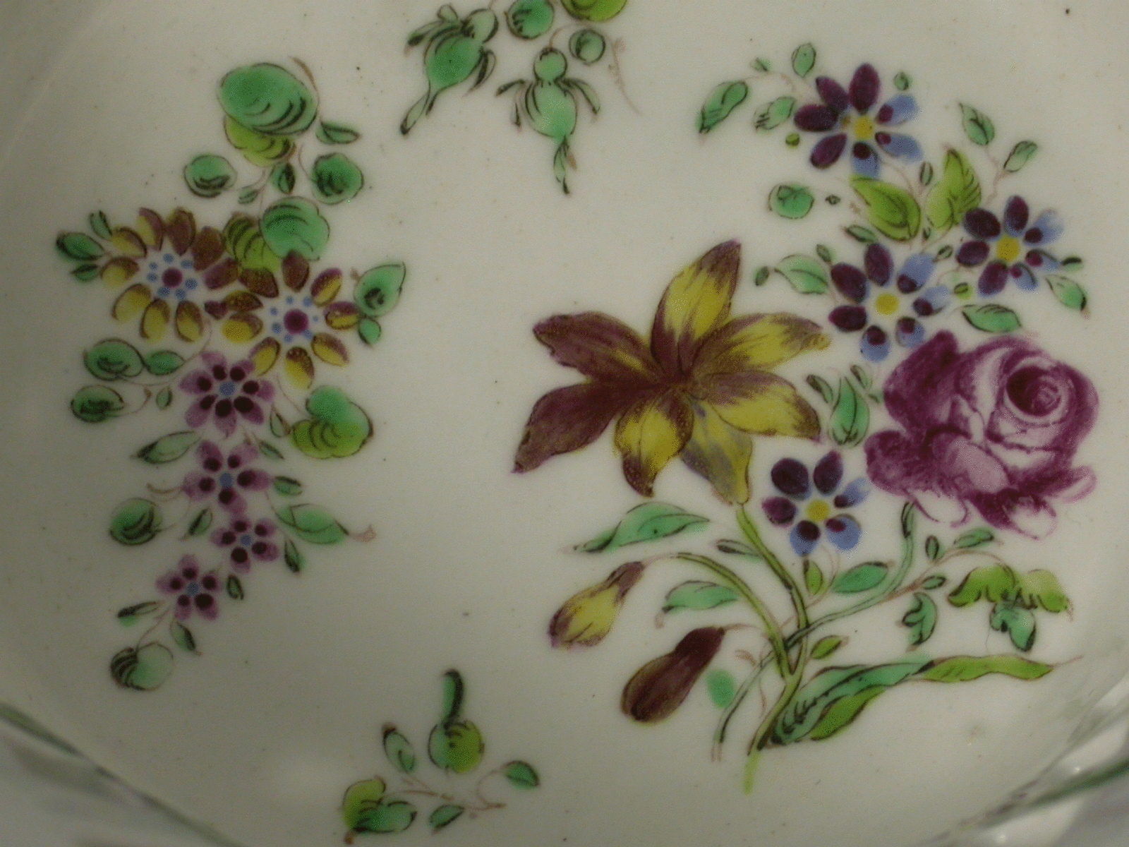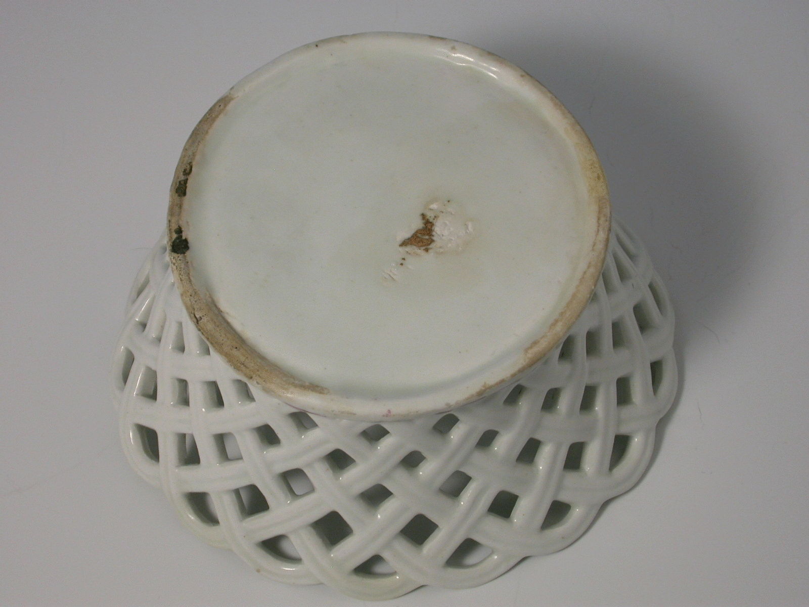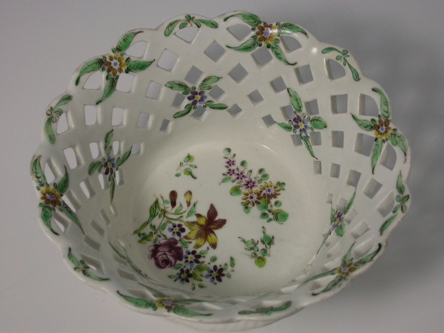 An unusual Bow circular pierced Basket, painted with flowers and foliage.