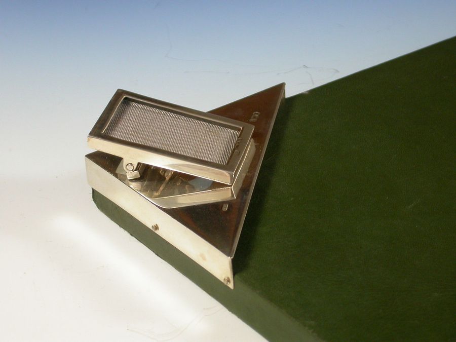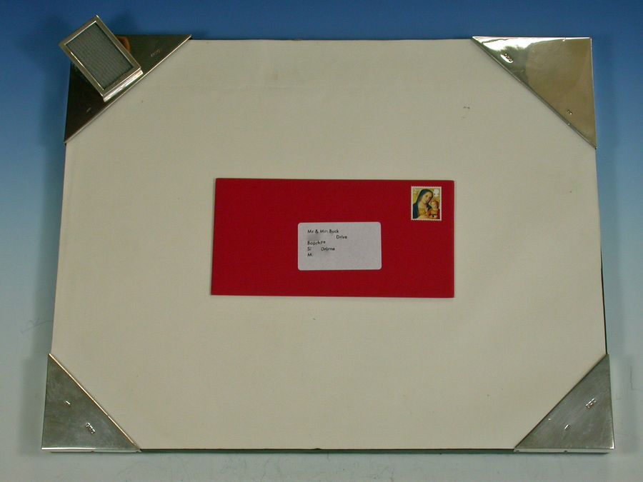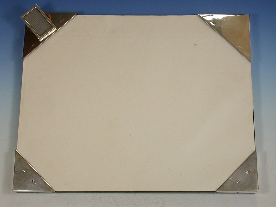 Unusual Edwardian Silver Mounted Desk Blotter with Photo Frame & Letter Clip