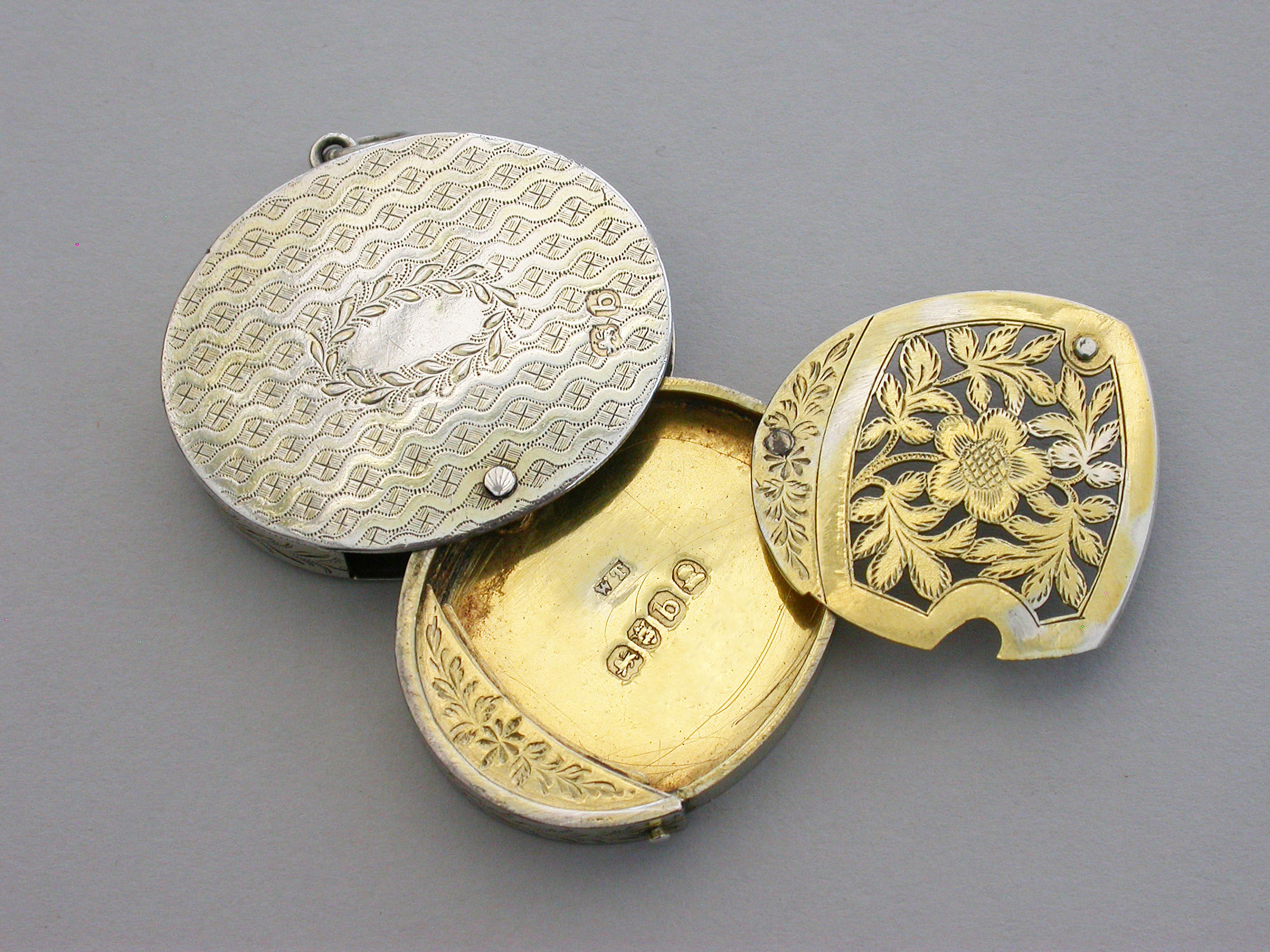 Unusual George III Silver Gilt Oval Swiveling Vinaigrette