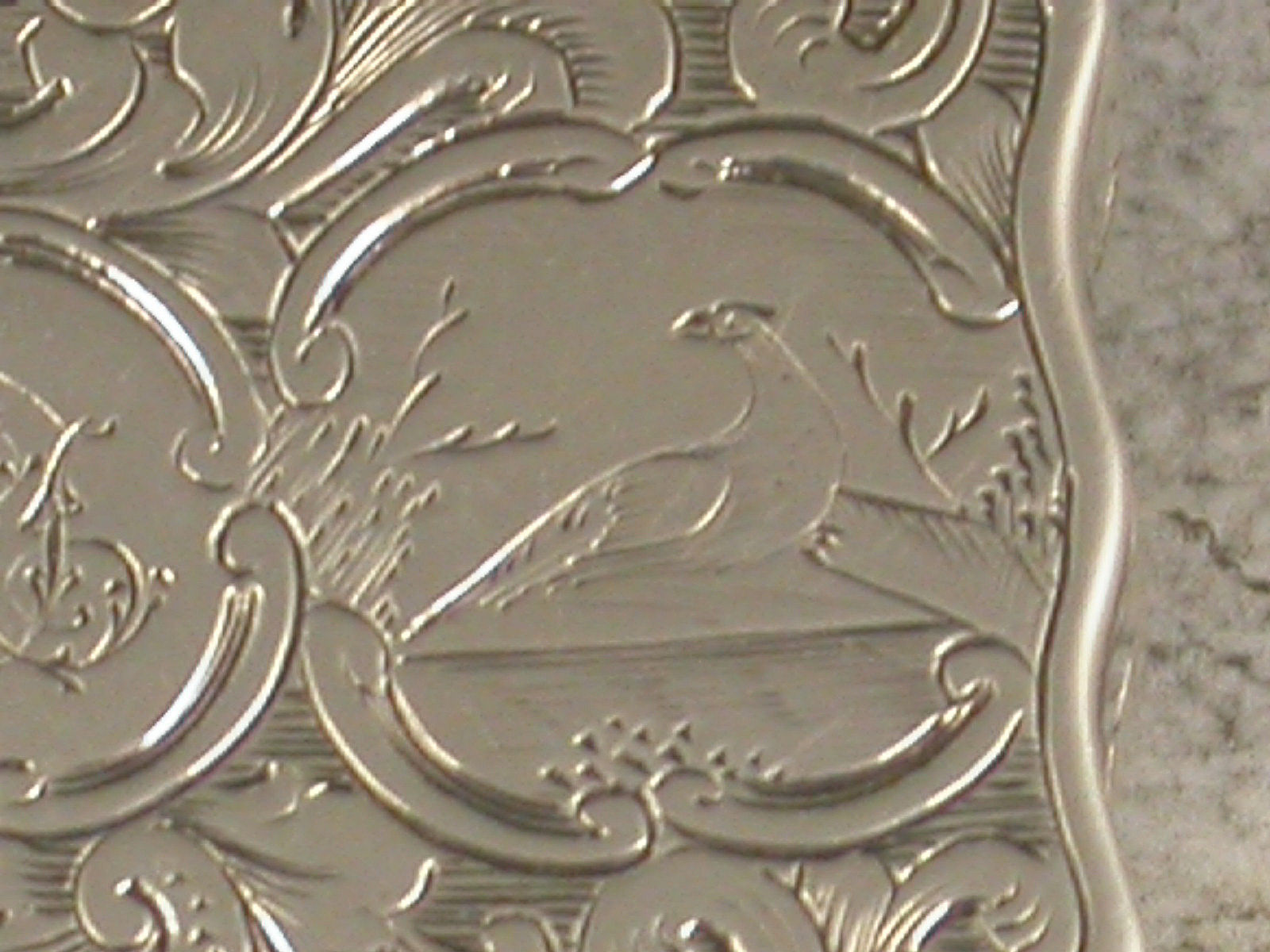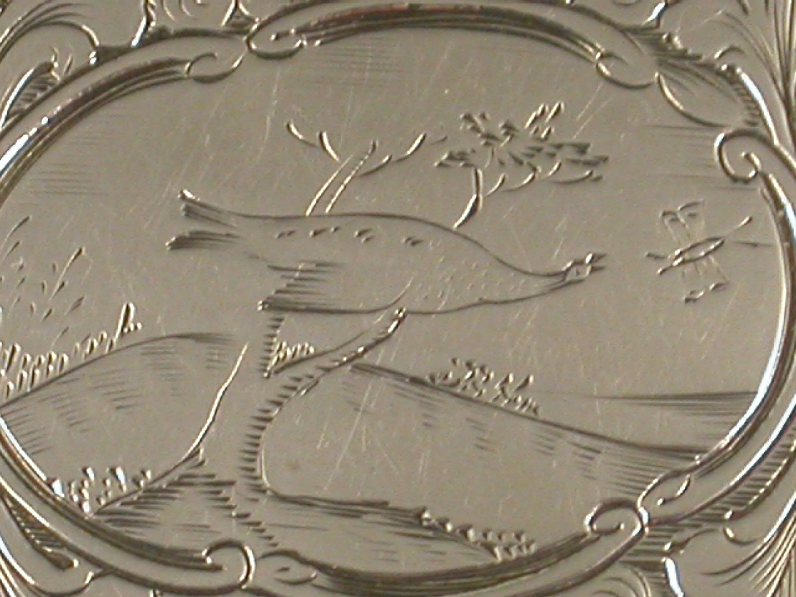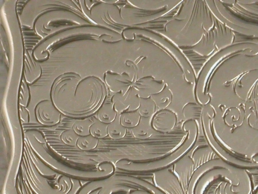 Unusual Victorian Antique Silver Vinaigrette Engraved with Birds & Fruit