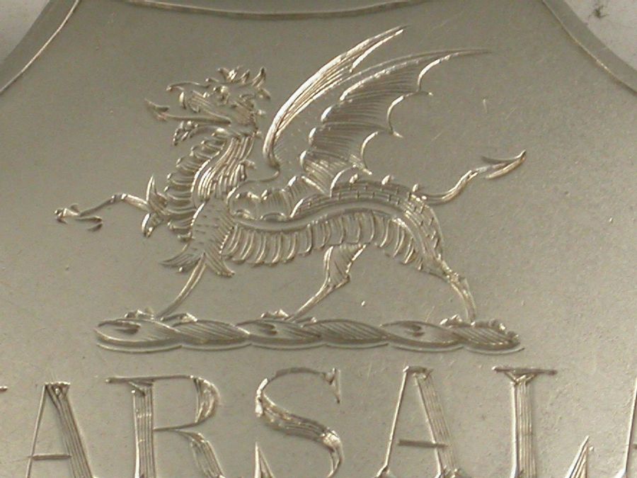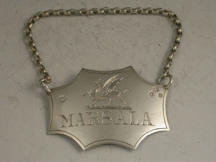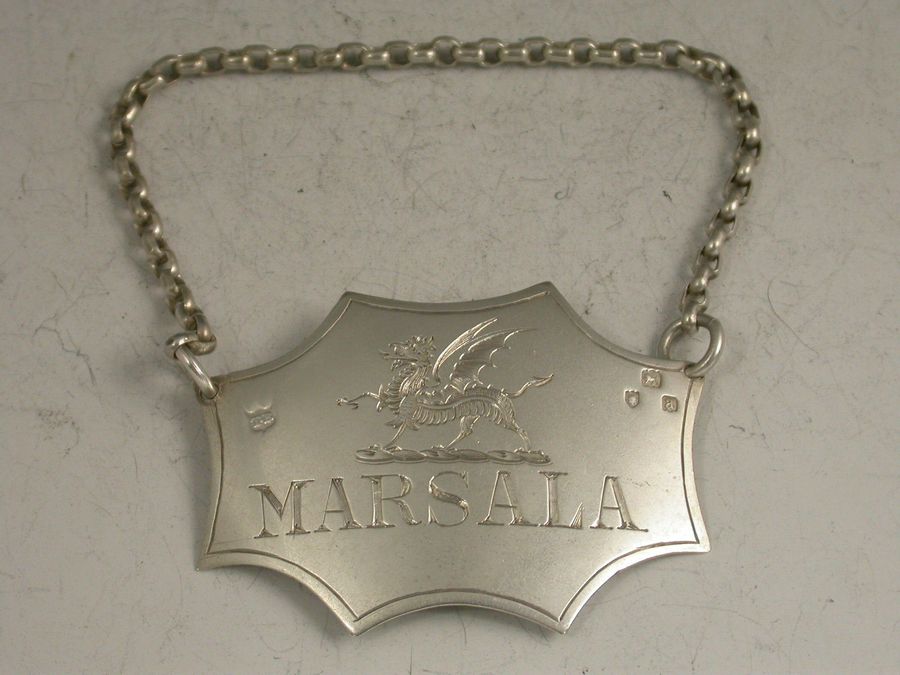 Unusuial Victorian Silver Dragon Crested Wine Label 'Marsala'