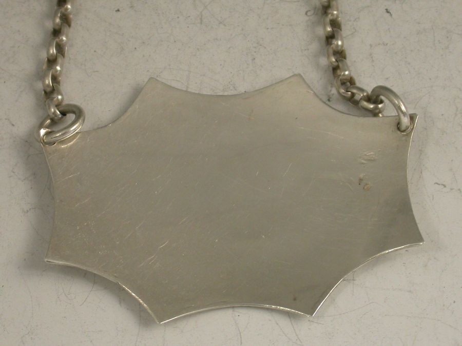 An unusual Victorian silver Wine Label of cartouche form with eight concave sides and a single reeded border, incised for Marsala below a crest of a dragon passant (the crest of several families including Farington, Glover, Loader, Lonsdale and Lowther).