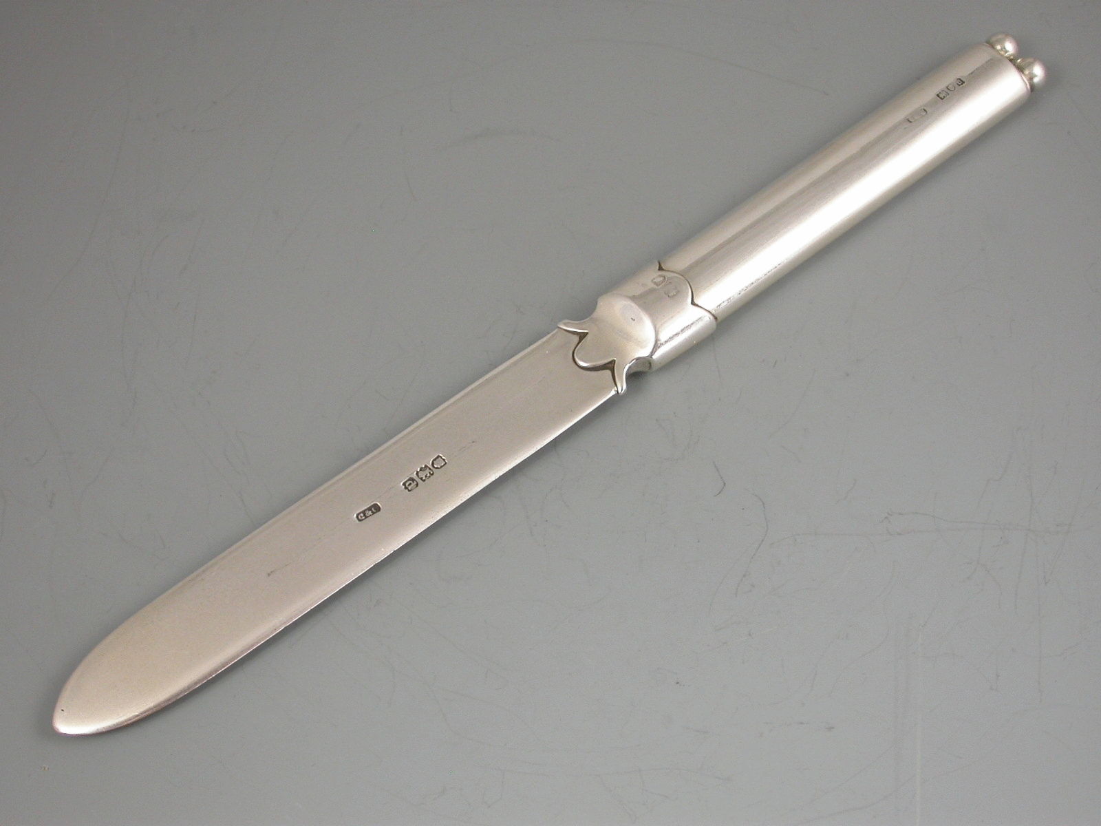 A fine Victorian silver combination Paper Knife with two stage telescopic Dip Pen and Pencil housed within the handle.