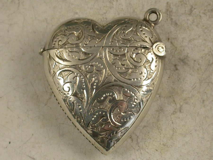 Victorian Antique Silver Heart Shaped Vesta Case