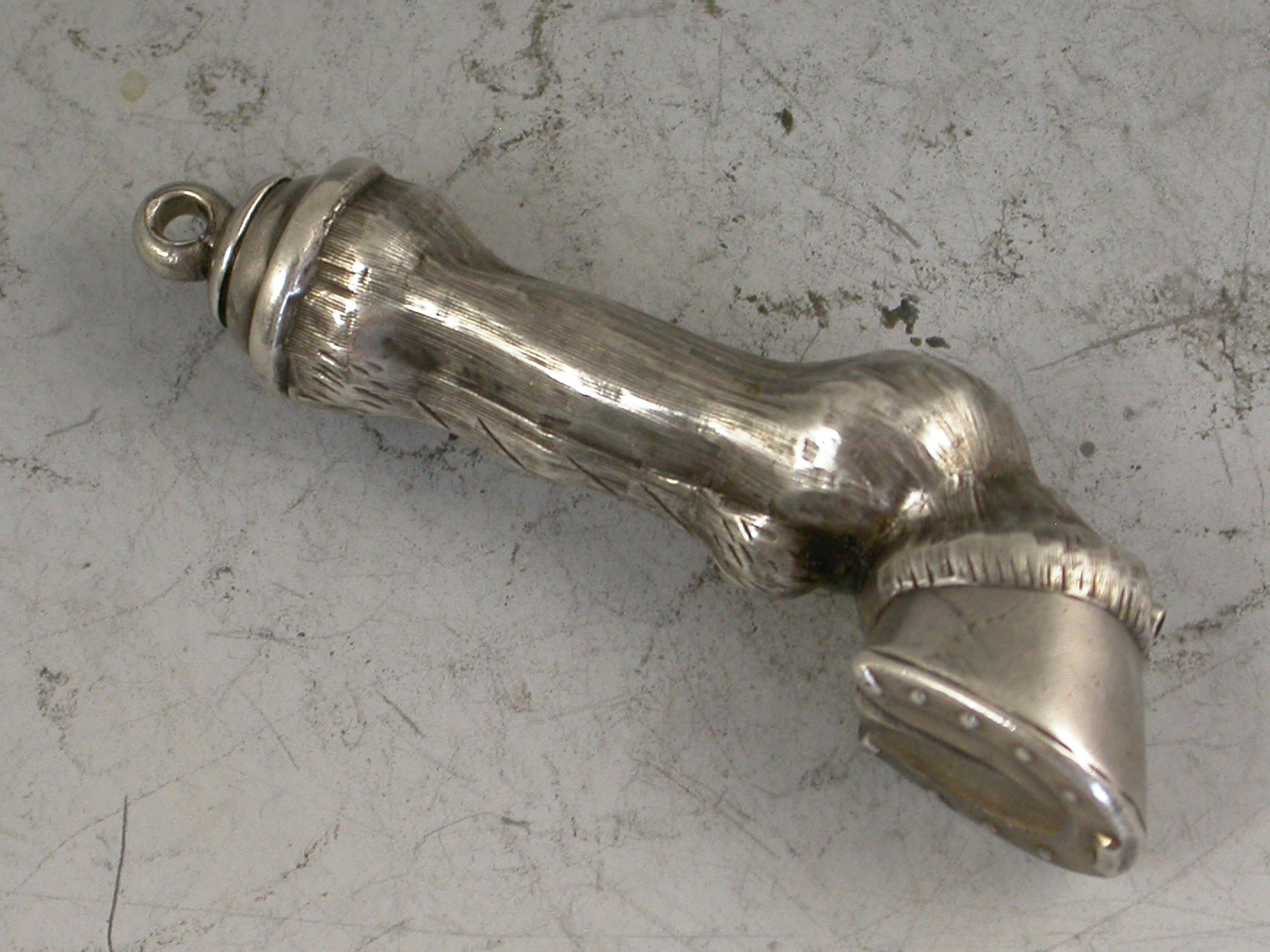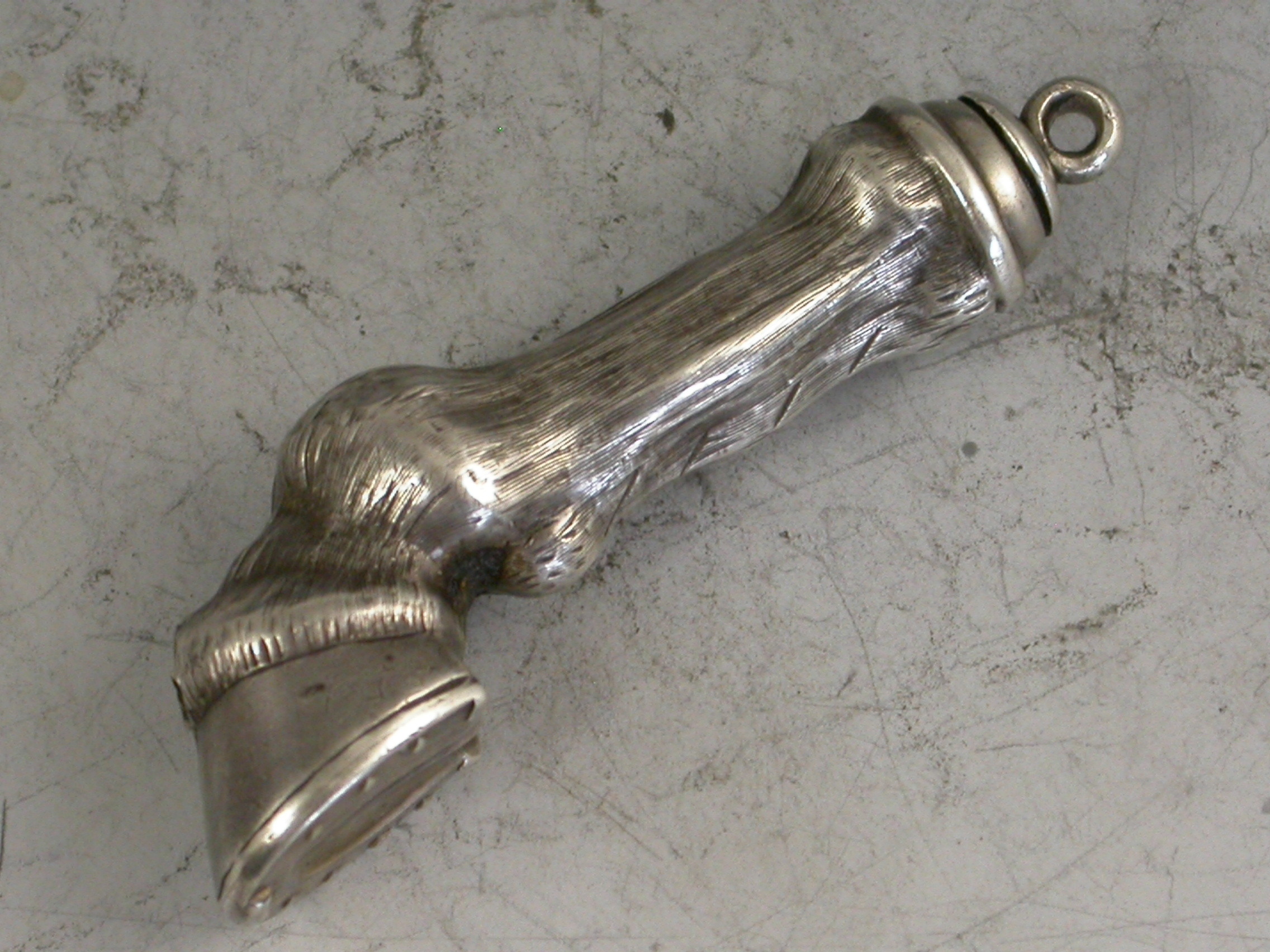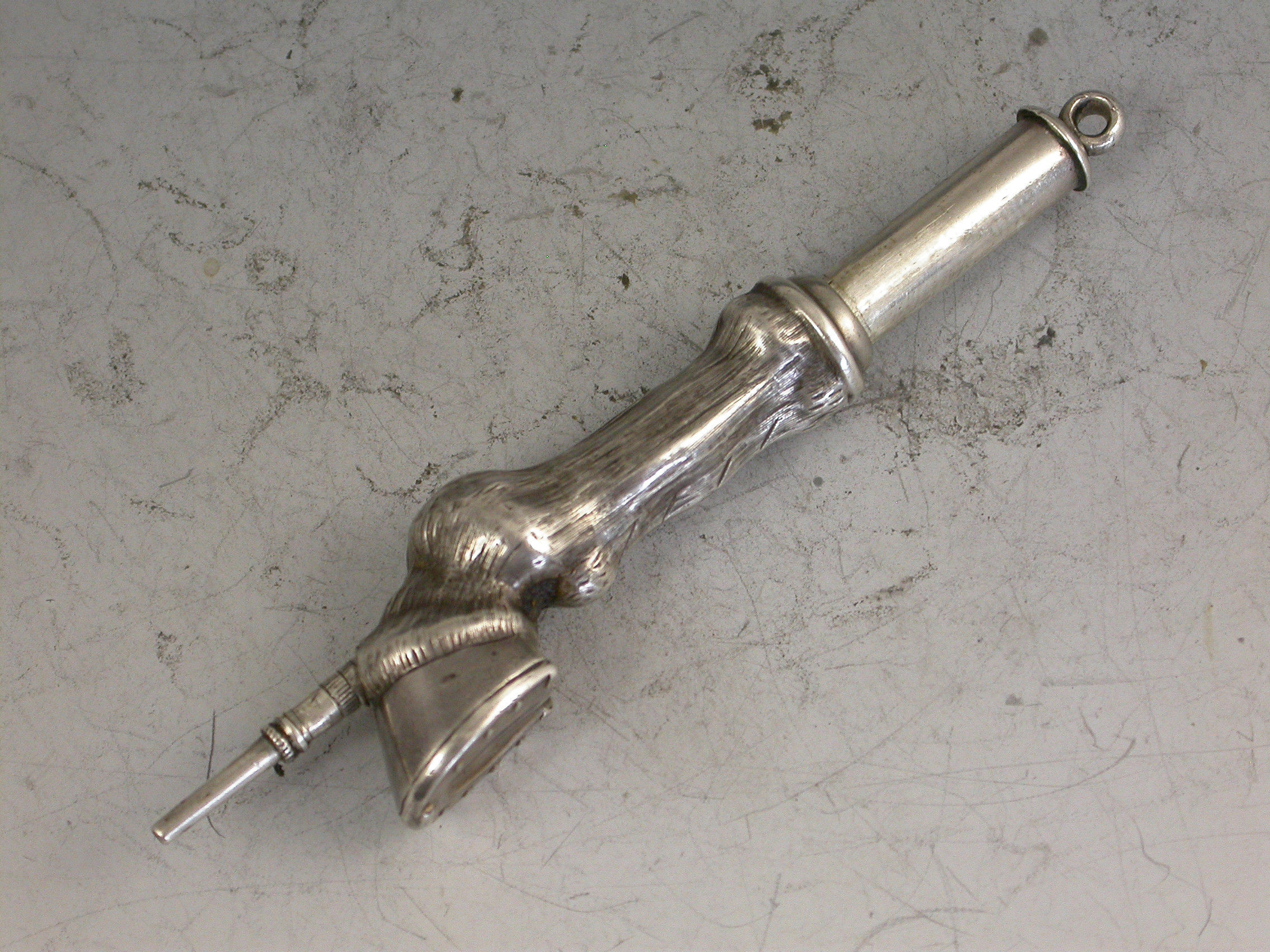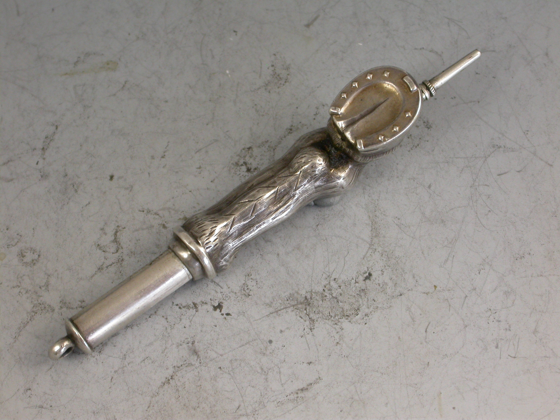 A rare Victorian novelty silver Propelling Pencil made in the form of a Horses Hoof and fetlock.