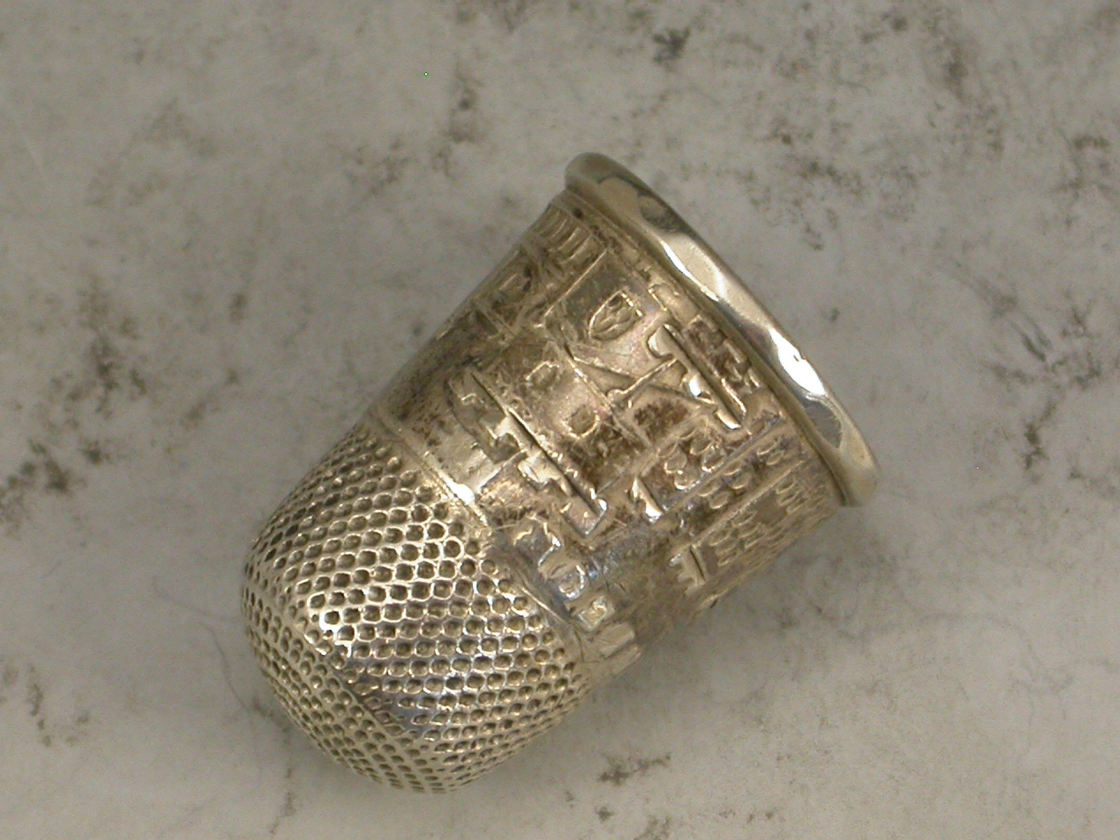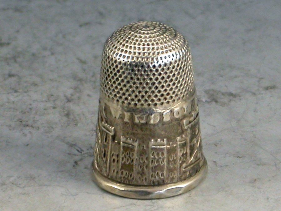 A rare mid 19th century silver Souvenir Thimble, the band embossed with a view of Windsor Castle and named - 'Windsor'.