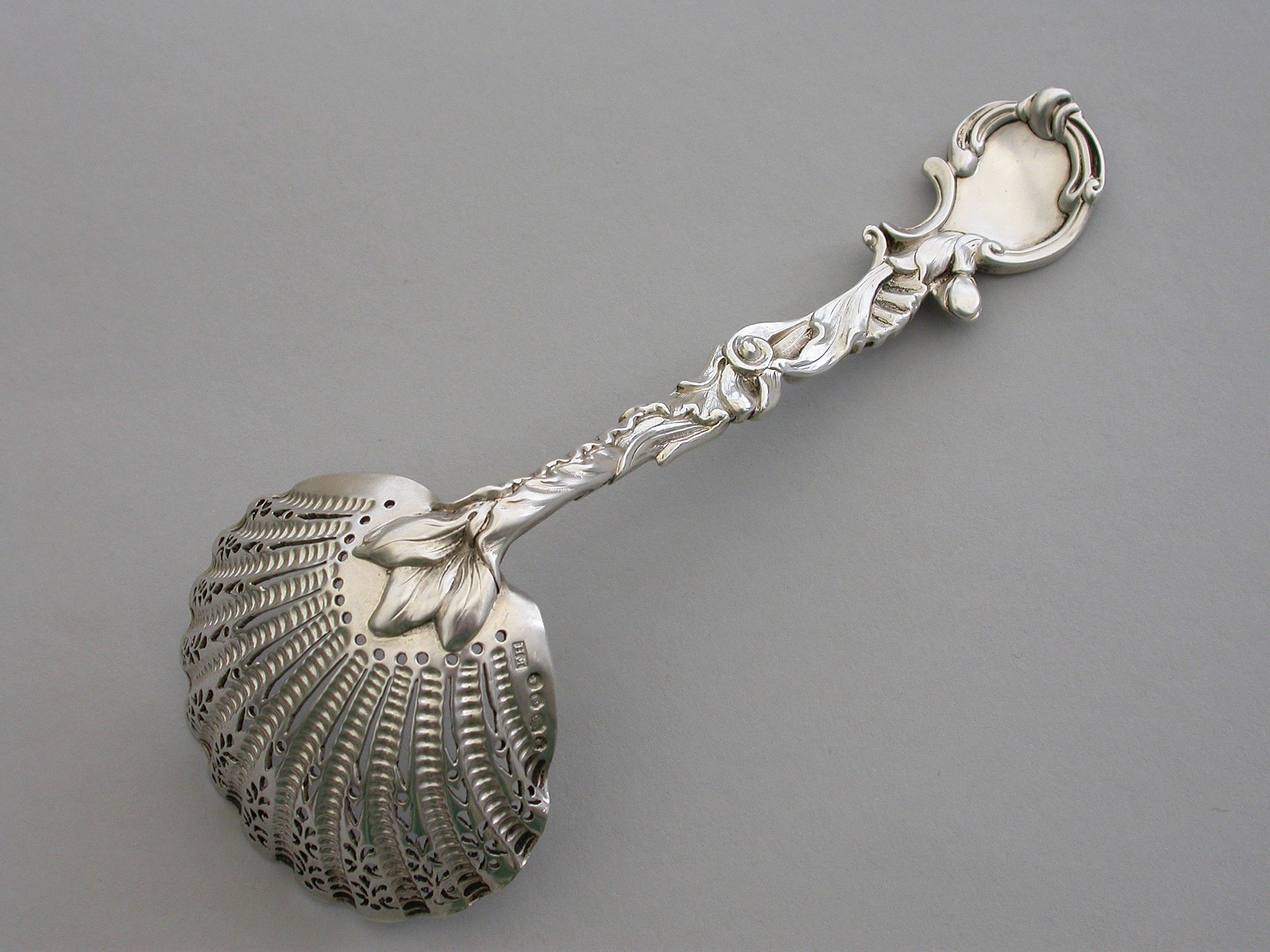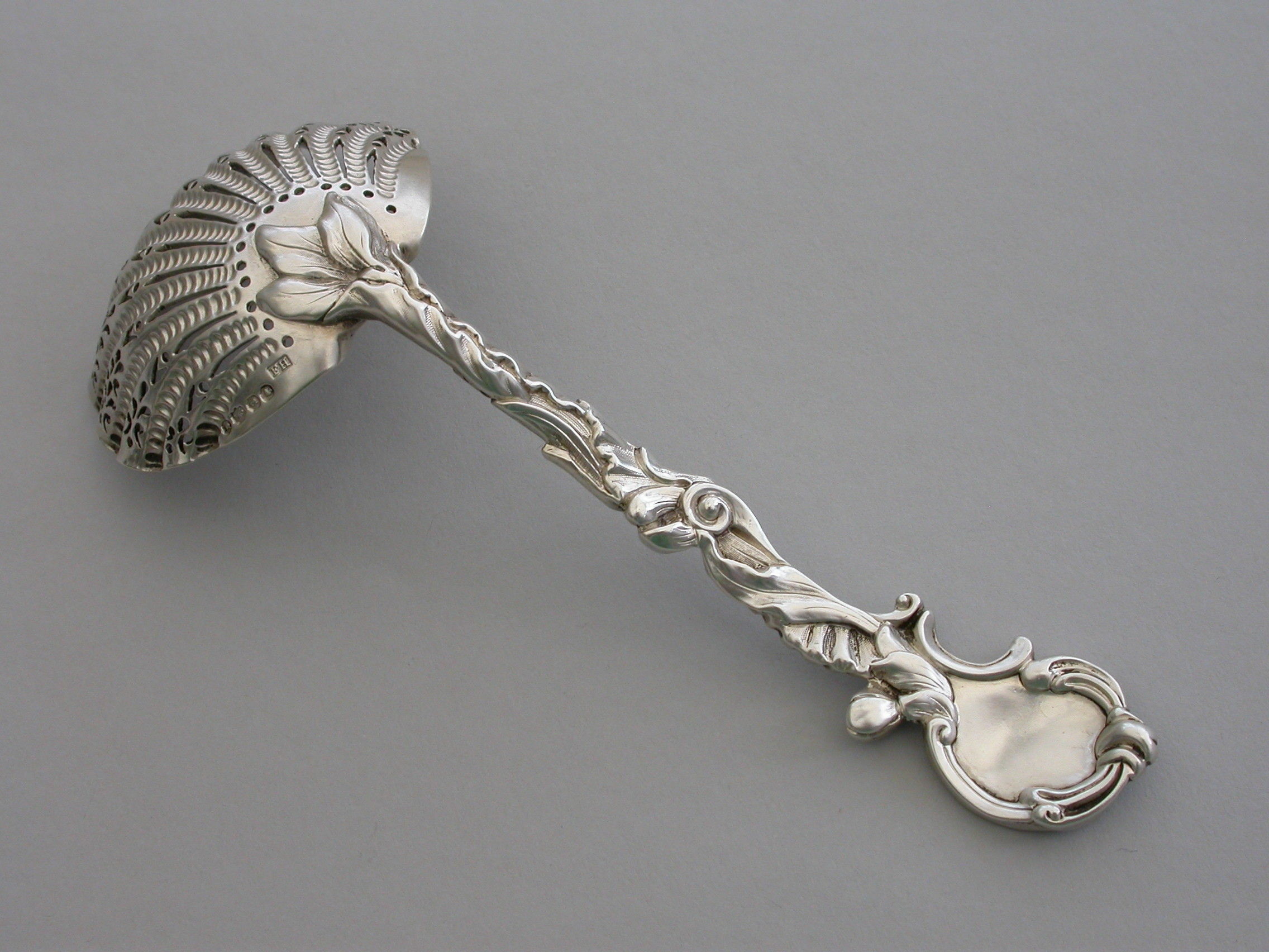 Victorian Cast Silver Rococo Pattern Sugar Sifter Ladle