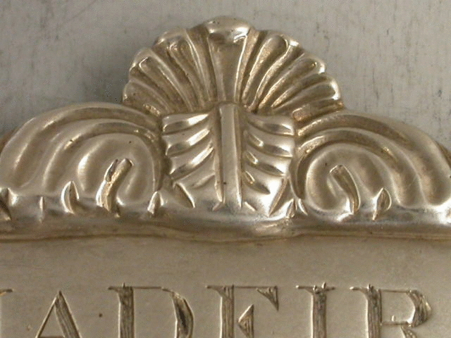 A good Victorian cast silver Wine Label of rectangular form with gadrooned border and shell and palm leaf surmount, incised for MADEIRA.