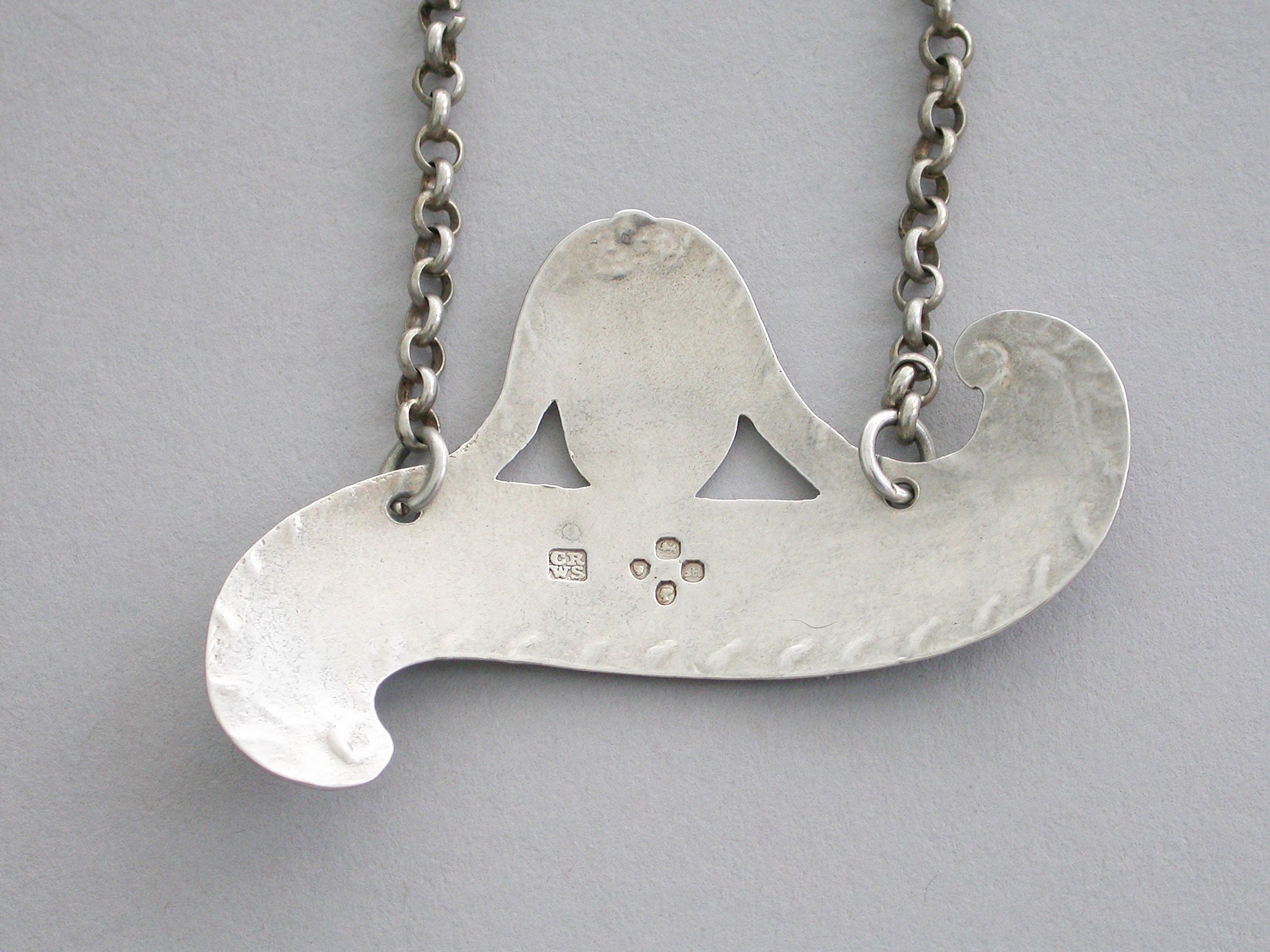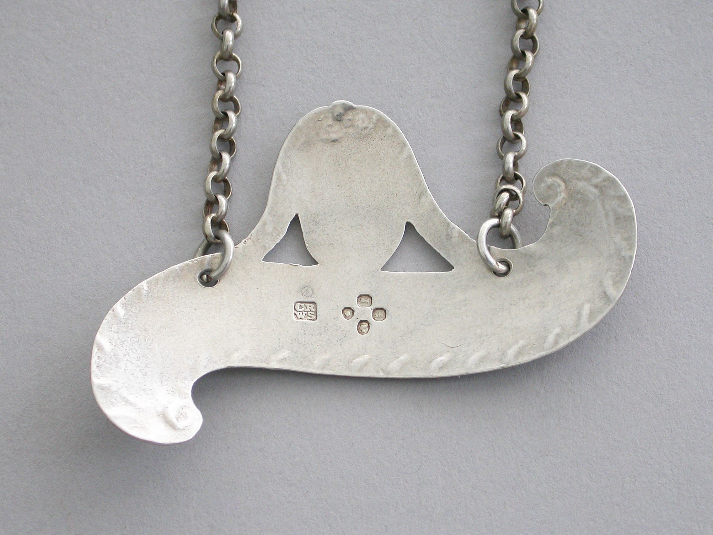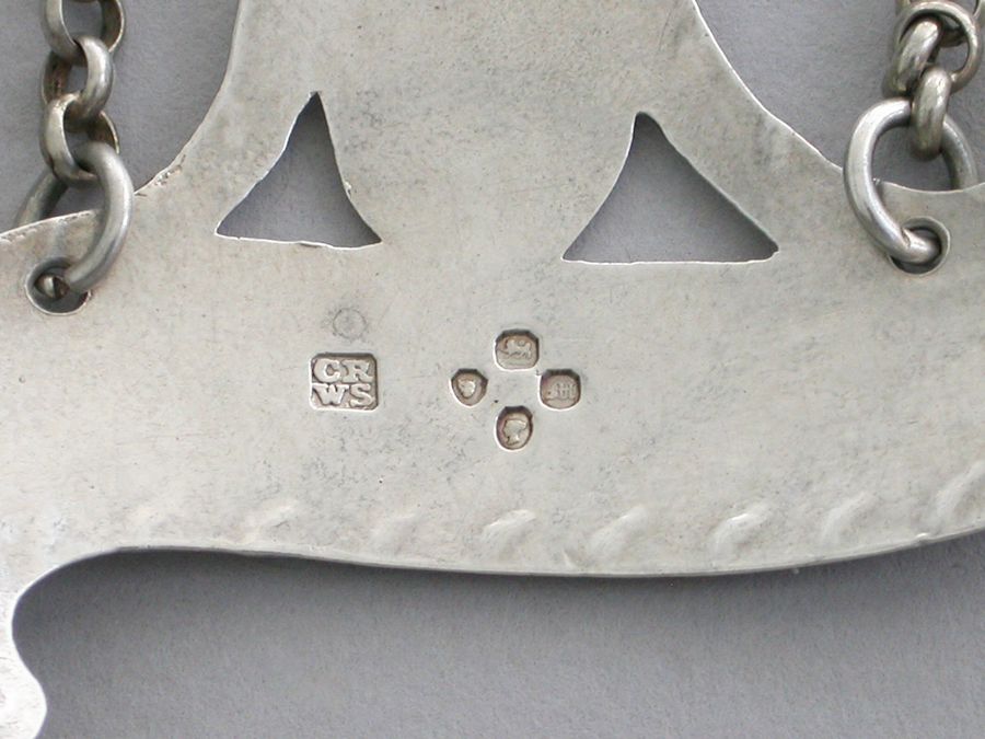 A large and unusual Victorian silver reversed scroll shaped Wine Label with feather edge border, an oval cartouche surmount supported by swags and engraved with the crest of William Lewis Hughes, 1st Baron Dinobren.