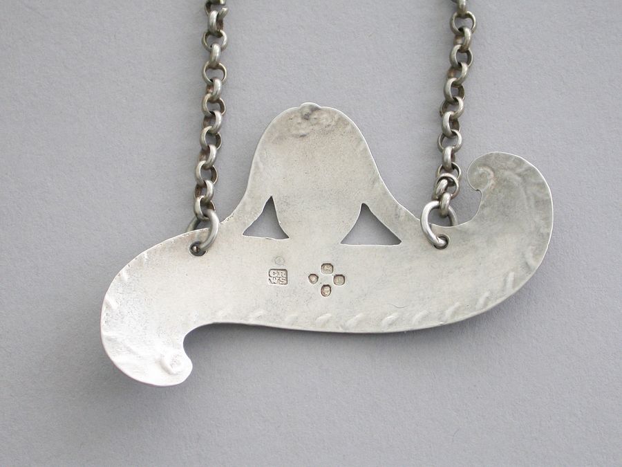* The scroll turns up at the right hand side and down at the left hand side, which is the opposite to the more usual left to right scroll.