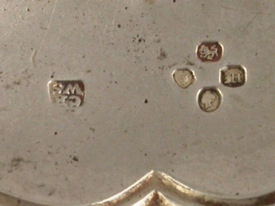 A good early Victorian silver Wine Label of shaped rectangular form with moulded raised border, incised for SWt WINE. Also engraved with a crest and initials, possibly for Farrant.