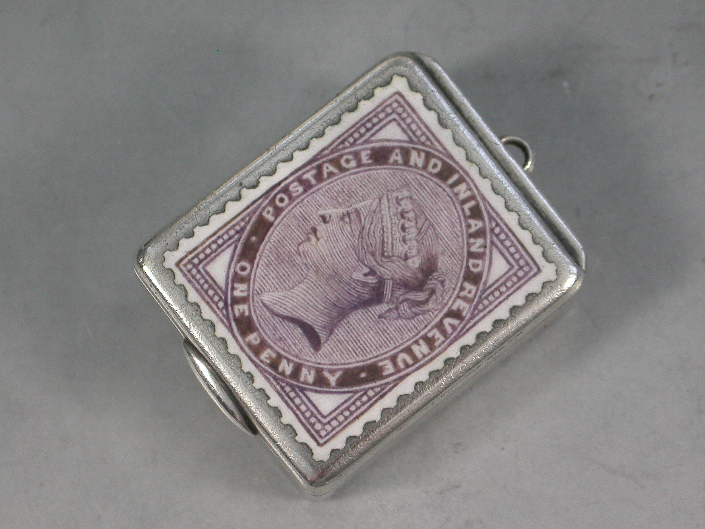 Victorian Enamelled Silver 'One Penny Lilac' Stamp Case