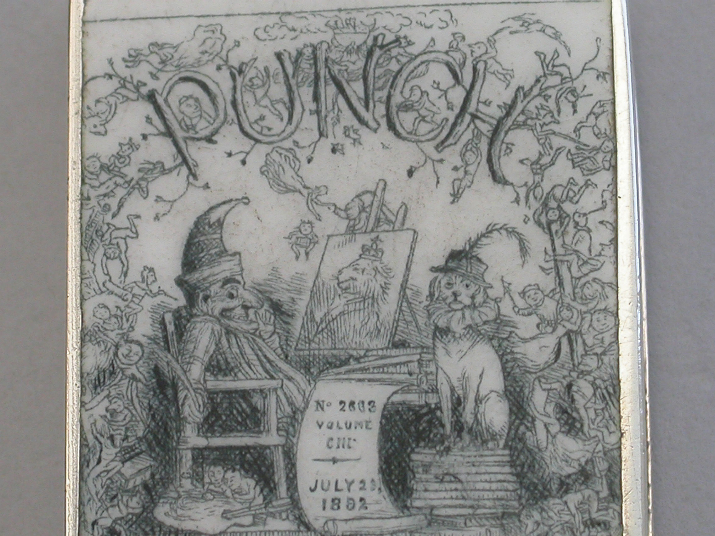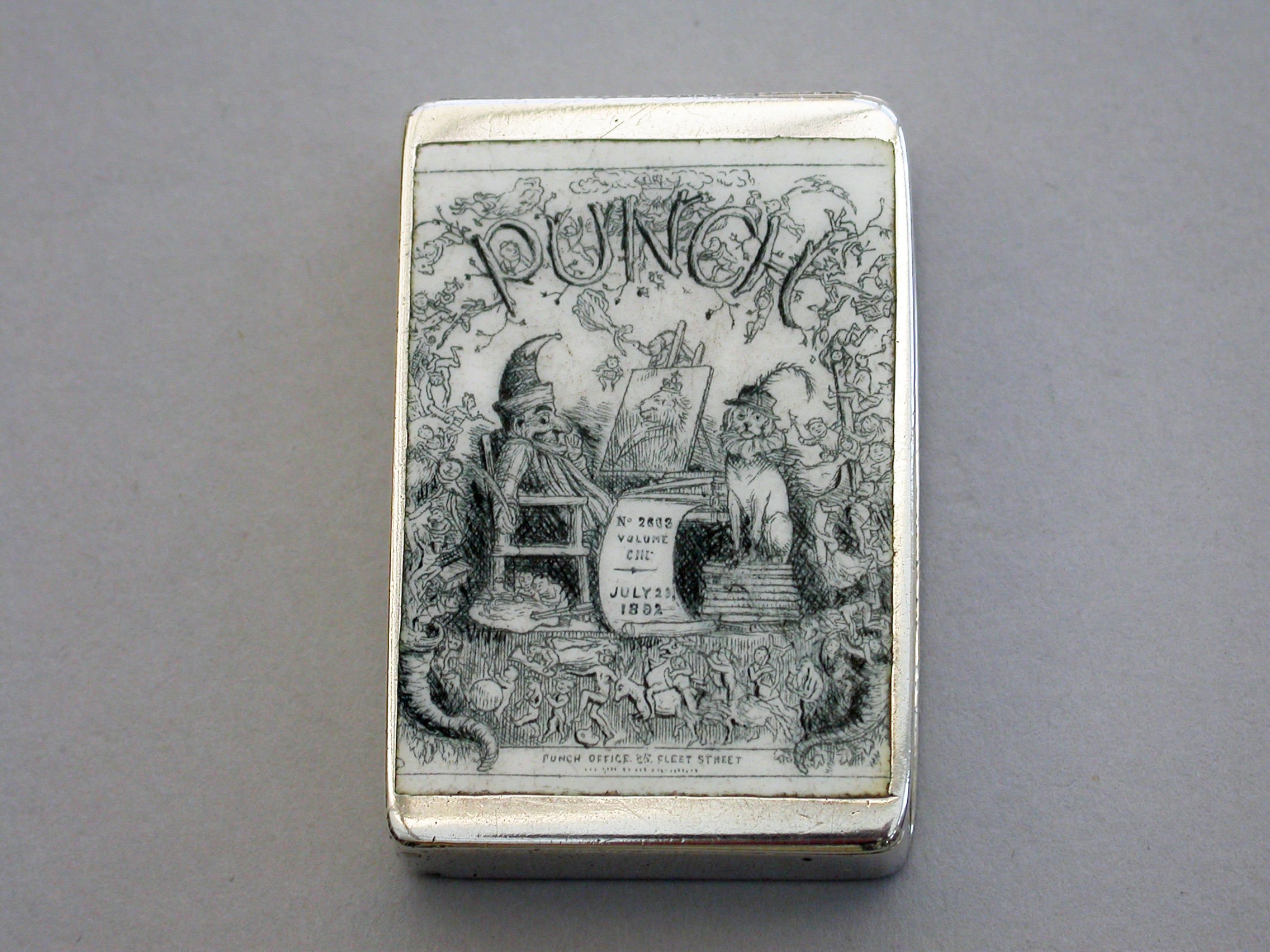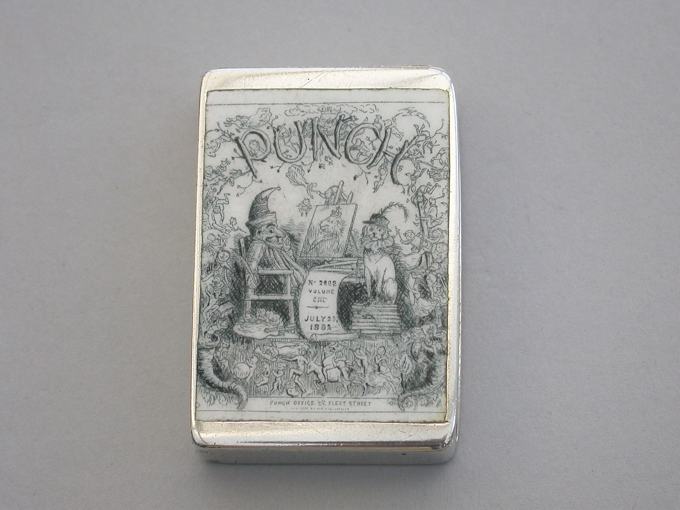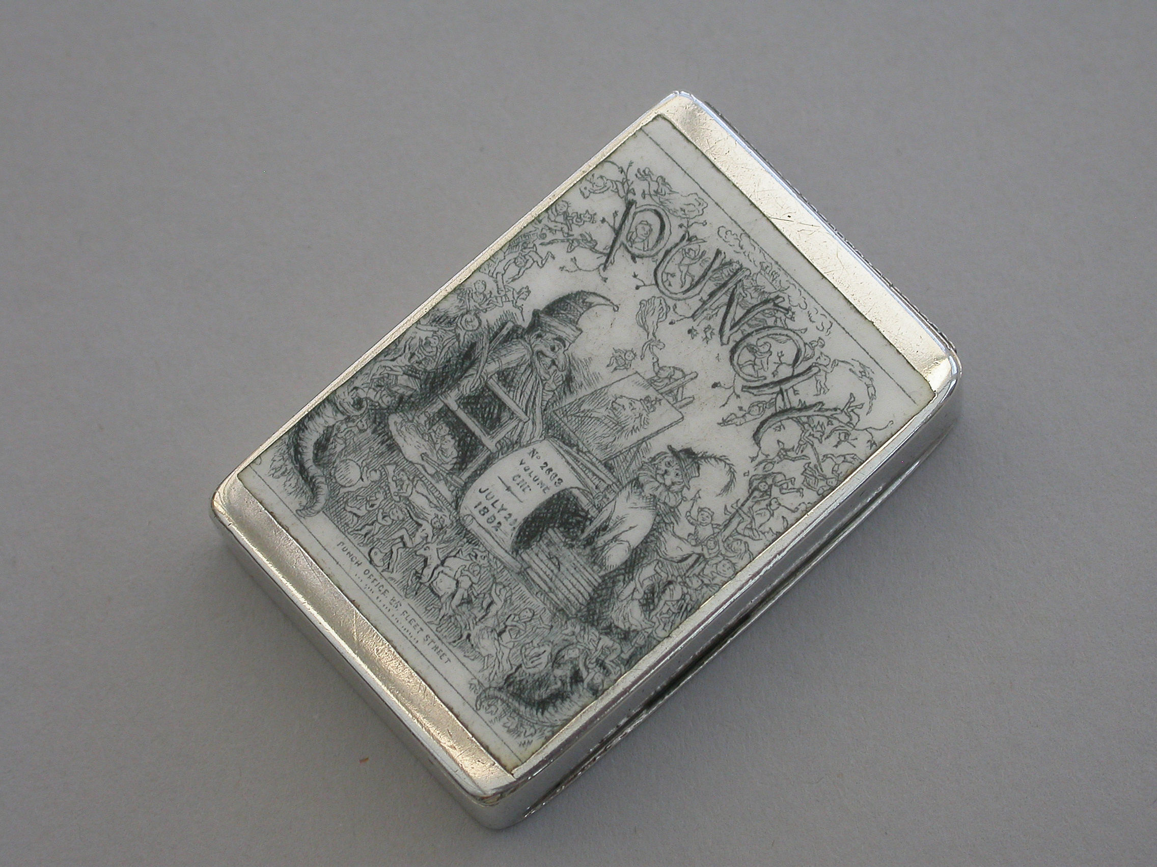 Victorian Enamelled Silver 'Punch Magazine' Cover Vesta Case