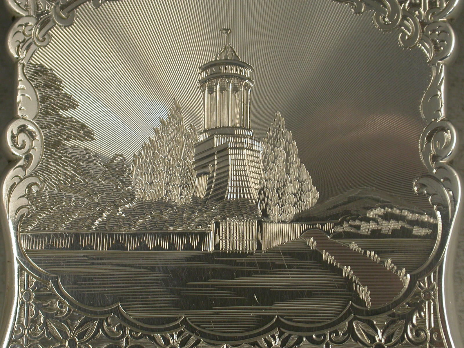 Victorian Engraved Silver 'Burns Monument' Card Case