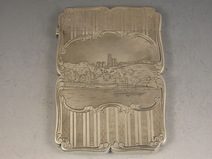 Victorian Engraved Silver Card Case Osborne House & Royal Yacht Victoria & Albert