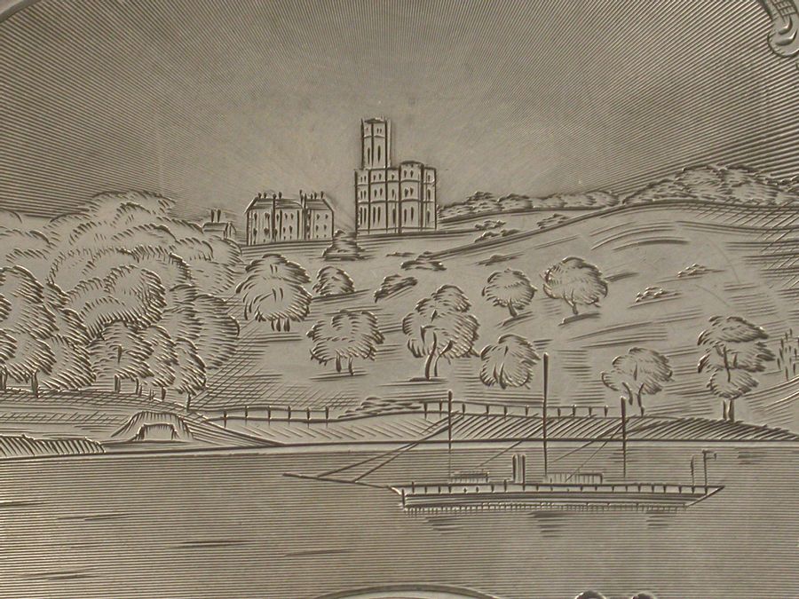 In good condition although the case is just slightly warped and there is some minor surface scratching to the engraved scene.