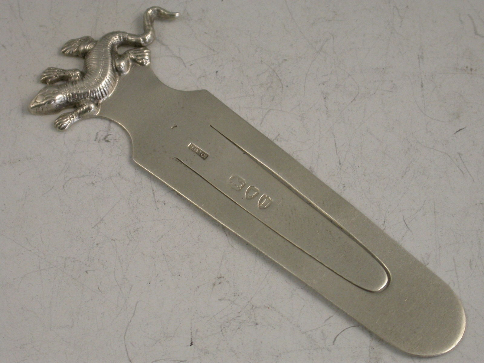 A very rare Victorian silver Bookmark, the terminal formed as a Lizard or Gecko.