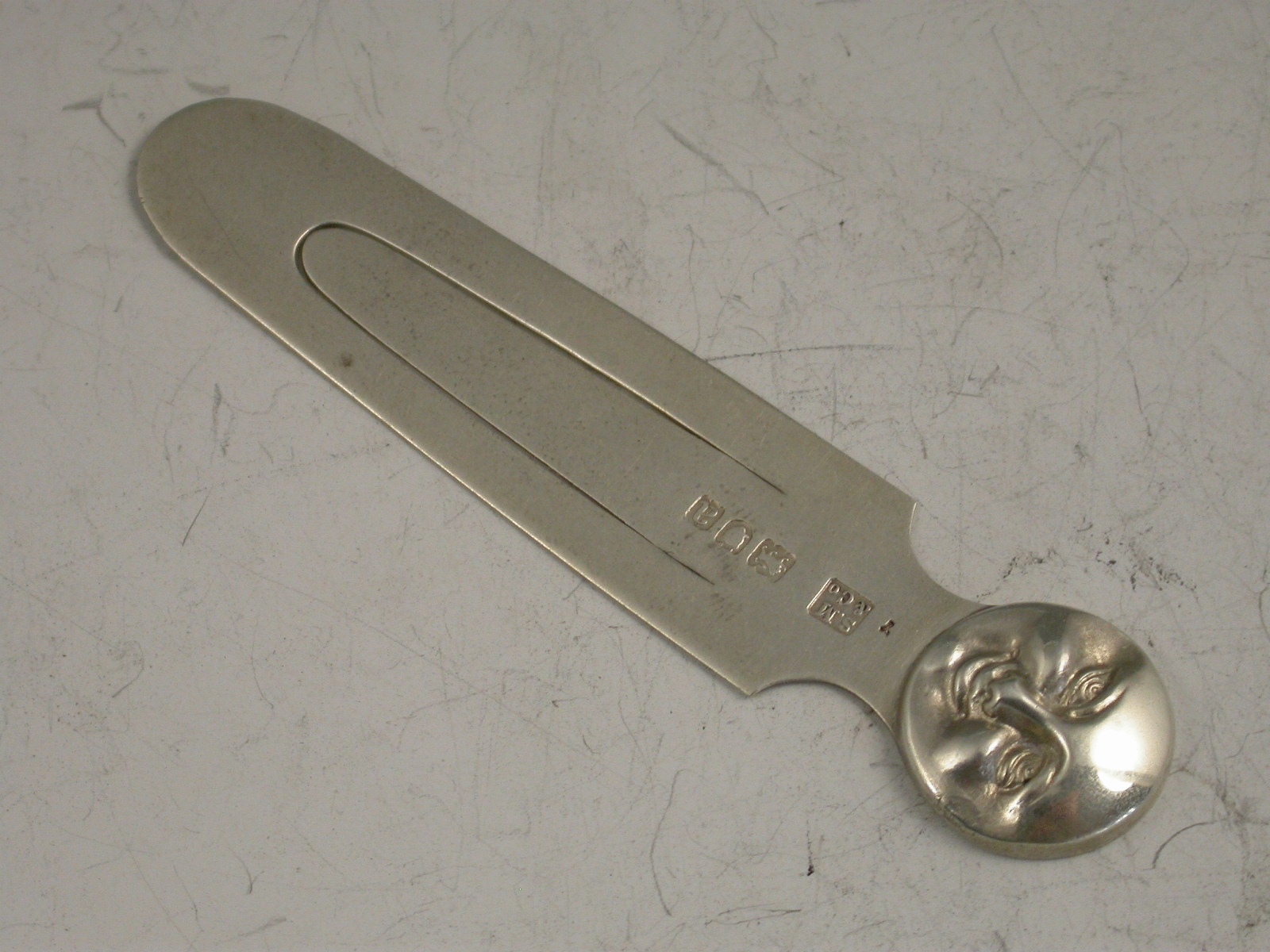 A rare Victorian silver Bookmark, the terminal depicting the ‘Man in the Moon’.