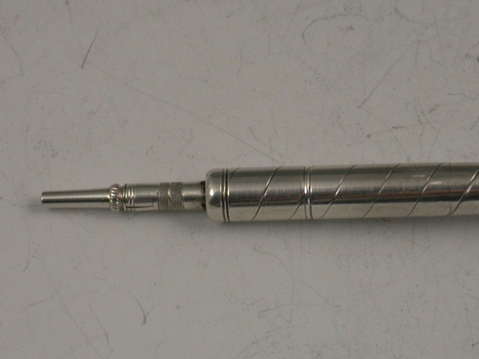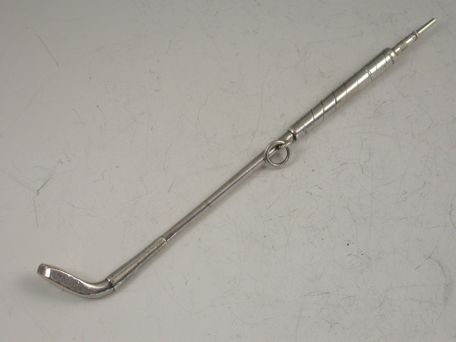 A rare Victorian novelty silver Propelling Pencil formed as a 19th century Golf Club, the pencil propelling from the handle with a twist mechanism.