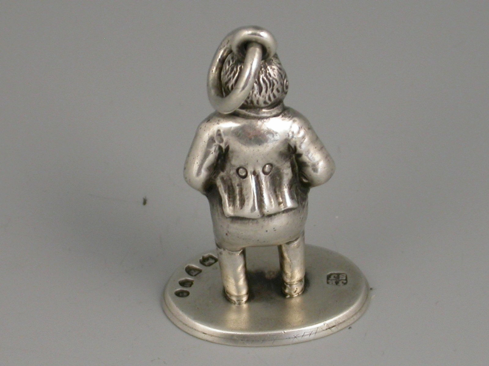 Victorian novelty cast silver Seal formed as the nursery rhyme character Little 'Tommy Tucker’, with attached suspension ring, the oval base engraved with a cipher – L D B A.