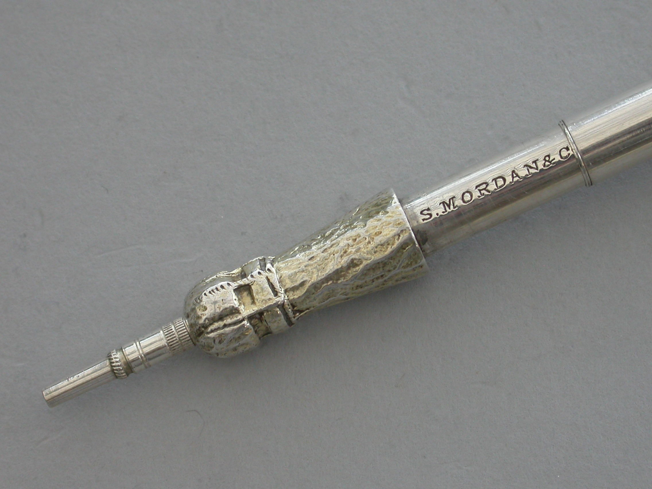Victorian Novelty Silver & Enamel Champagne Bottle Propelling Pencil