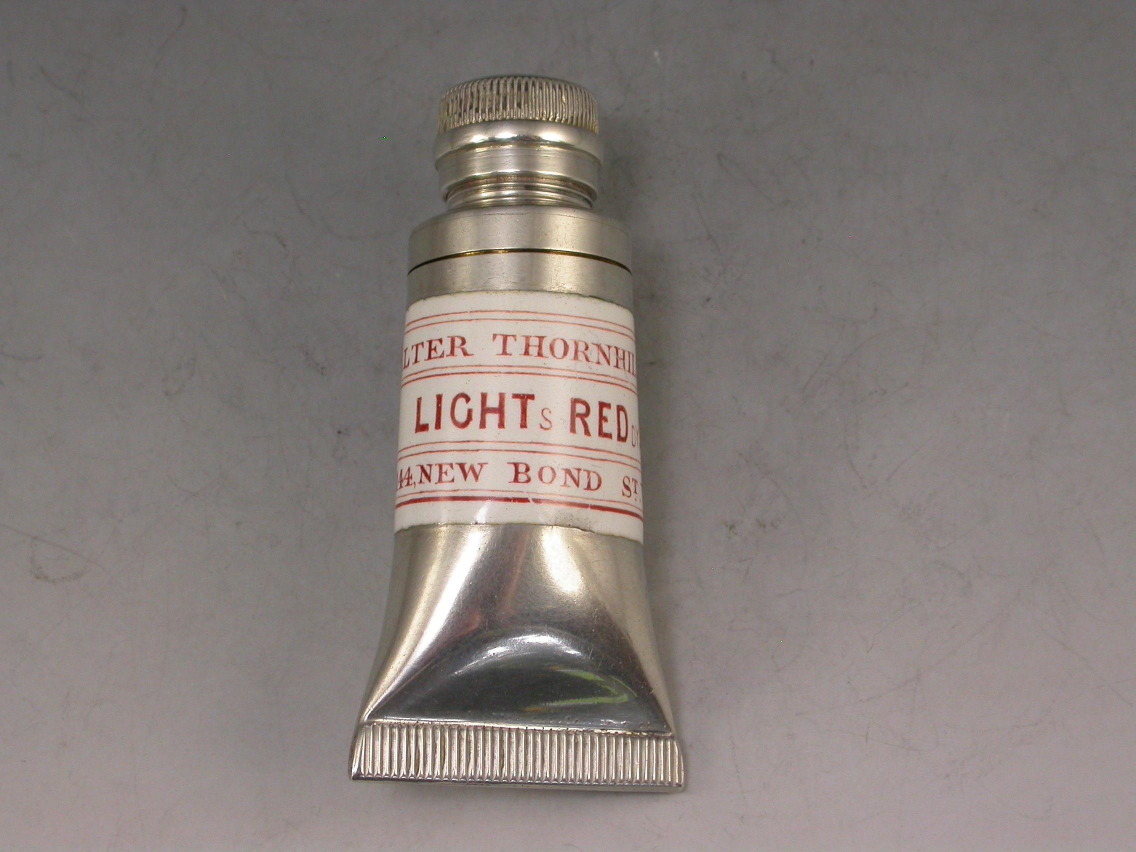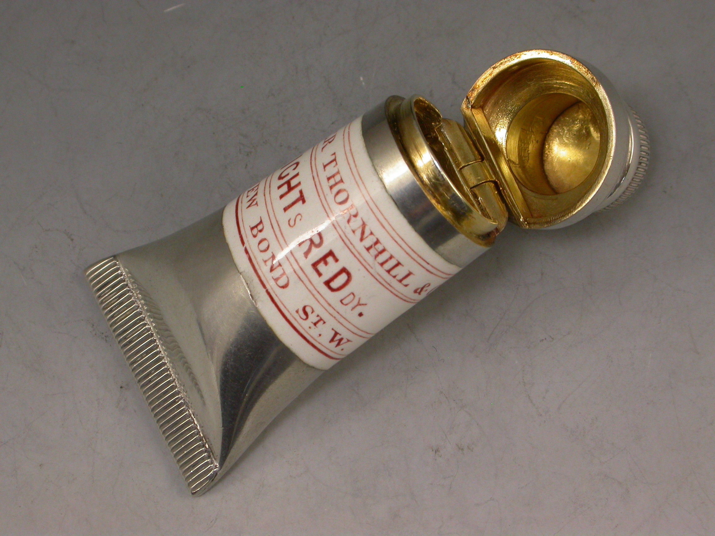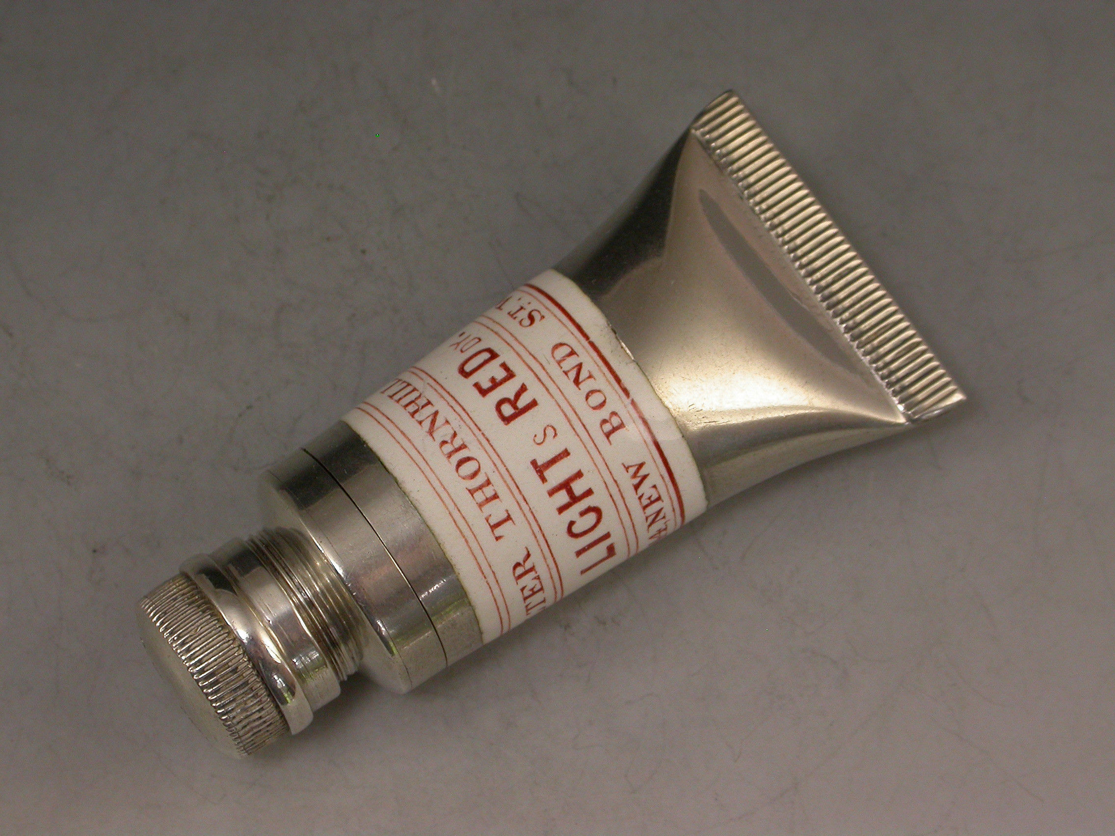 Victorian Novelty Silver & Enamel Tube of Paint Vesta Case LIGHTs REDdy