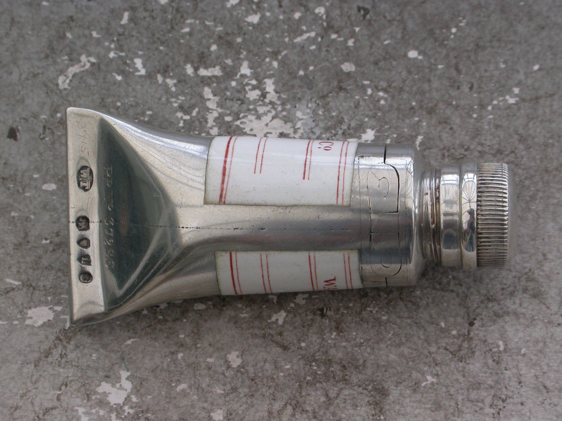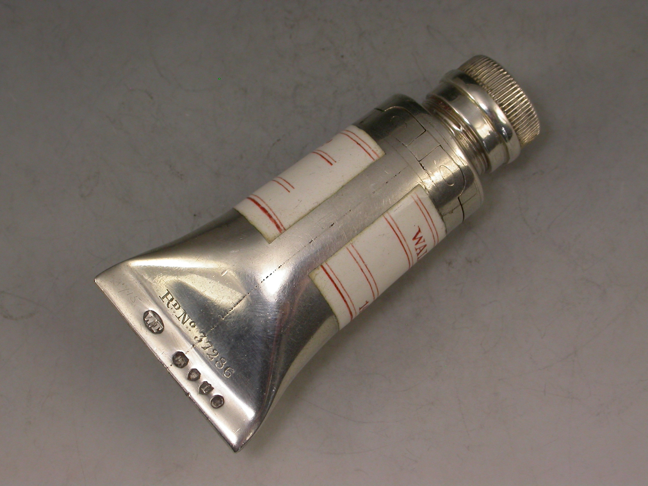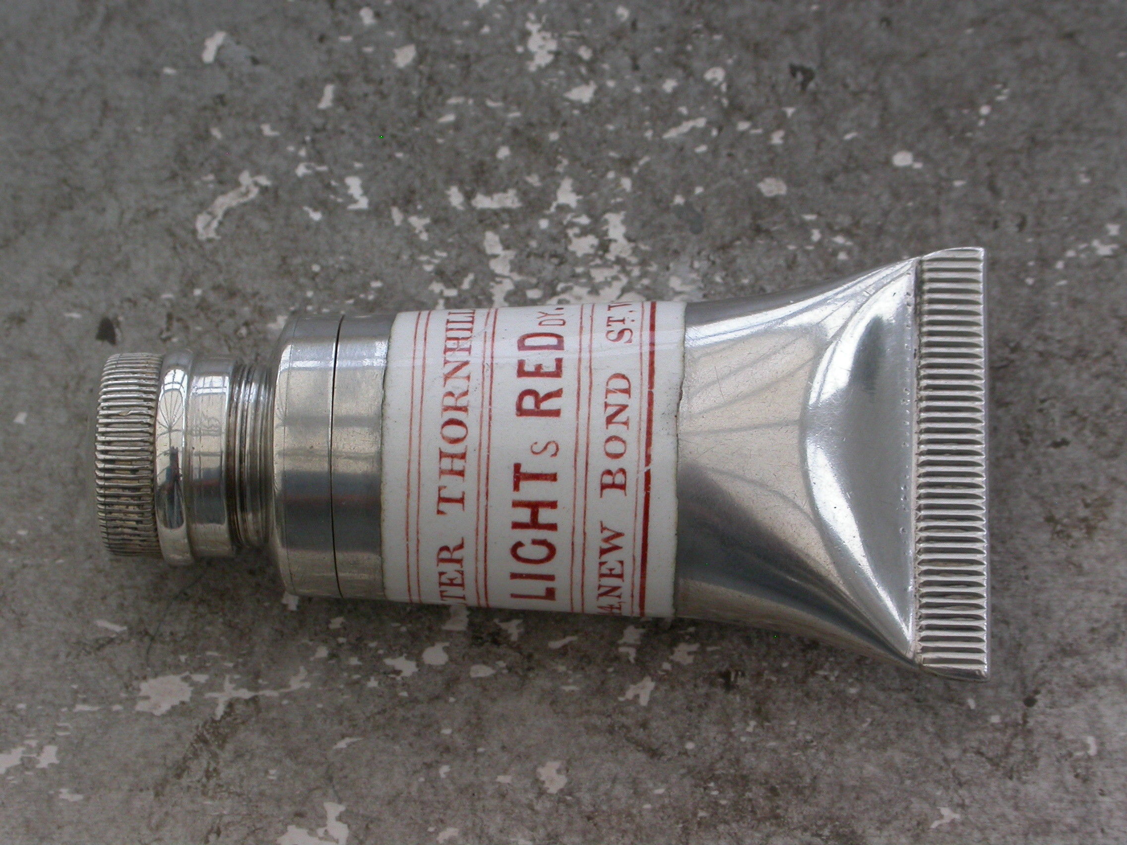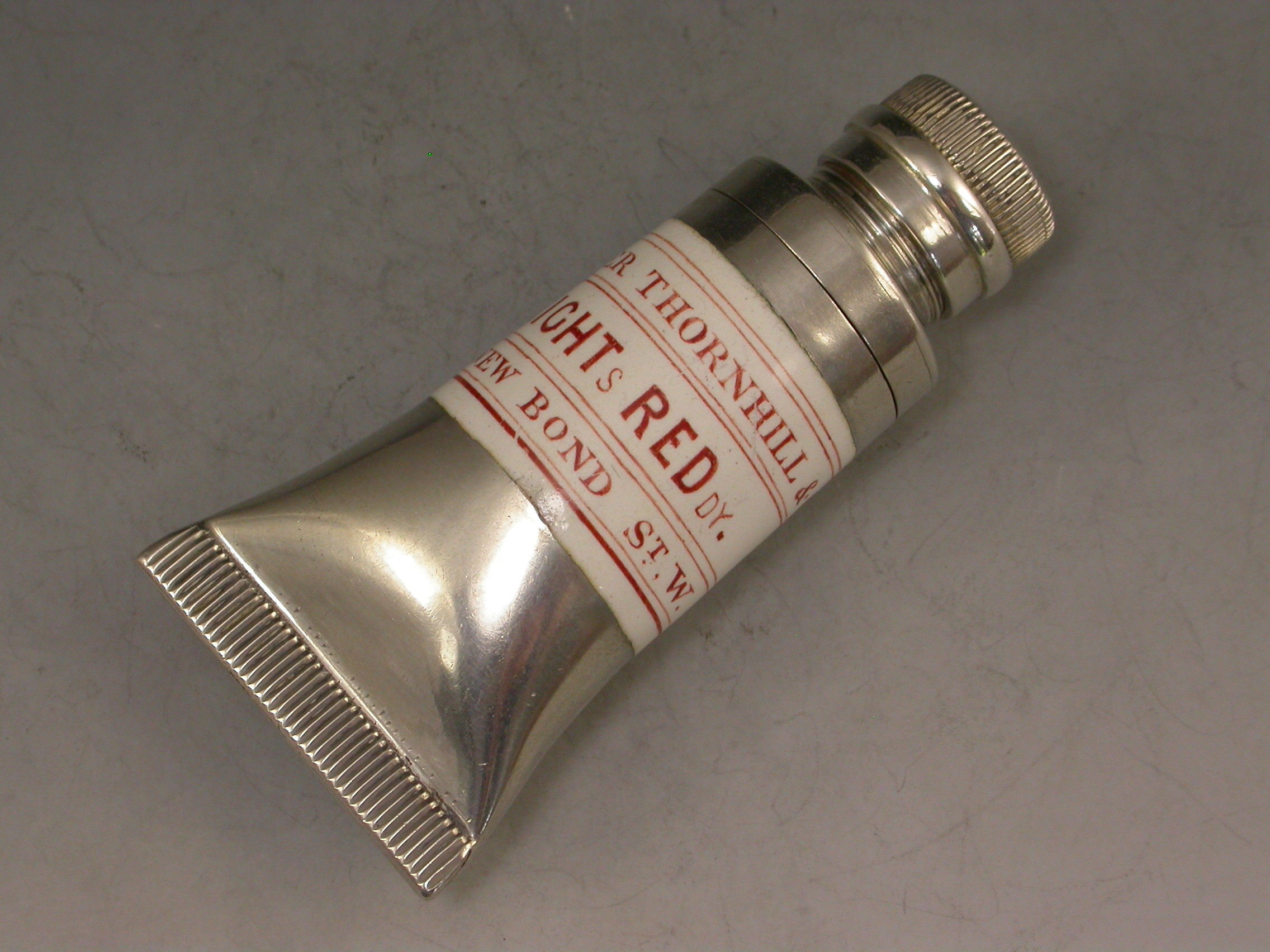 Victorian Novelty Silver & Enamel Tube of Paint Vesta Case LIGHTs REDdy