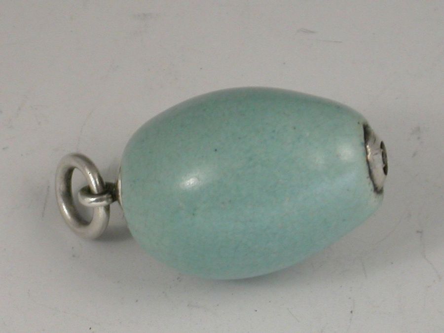 A rare novelty silver Propelling Pencil with telescopic action, the body formed from as a birds egg, possibly a Robins.