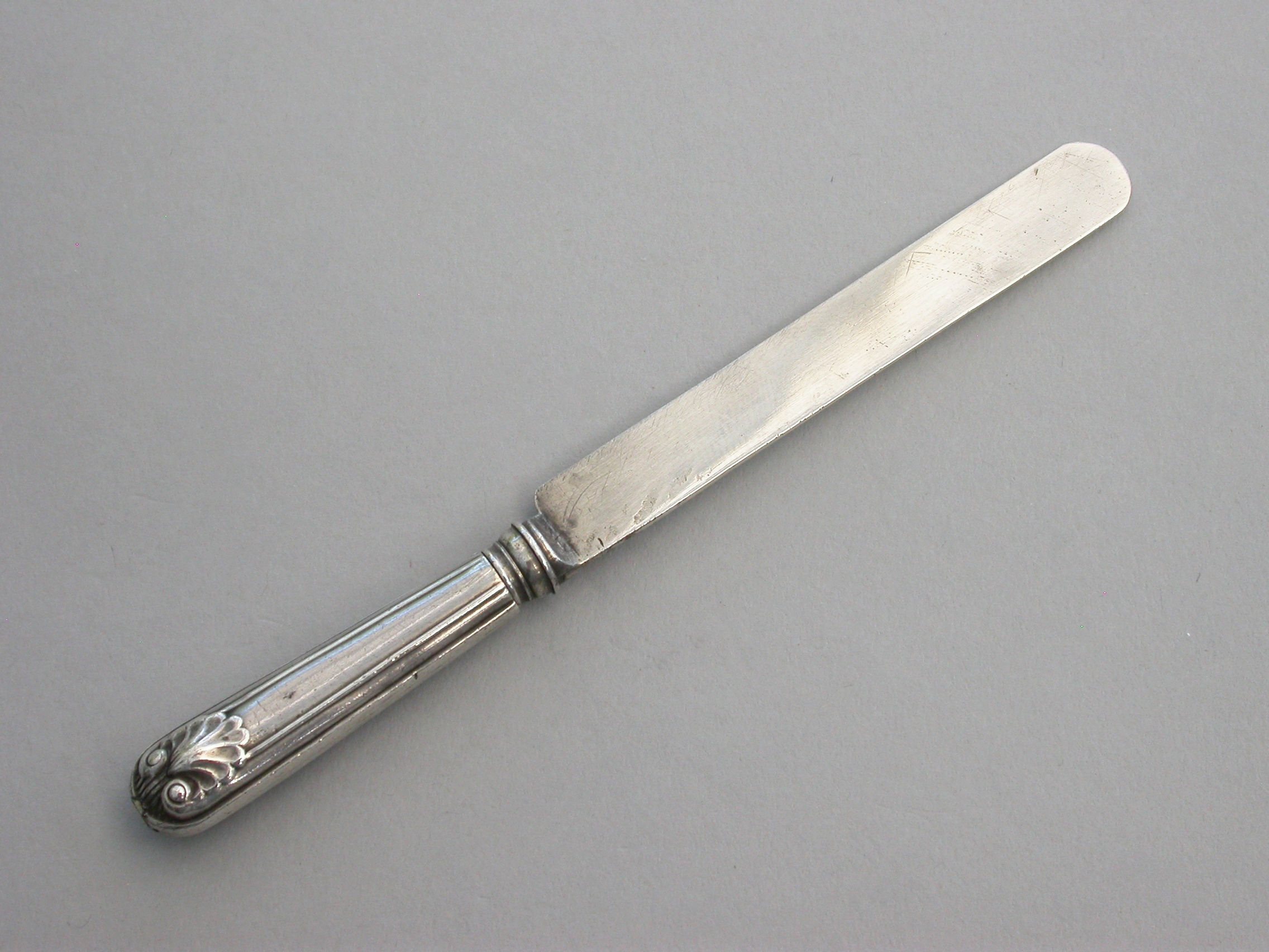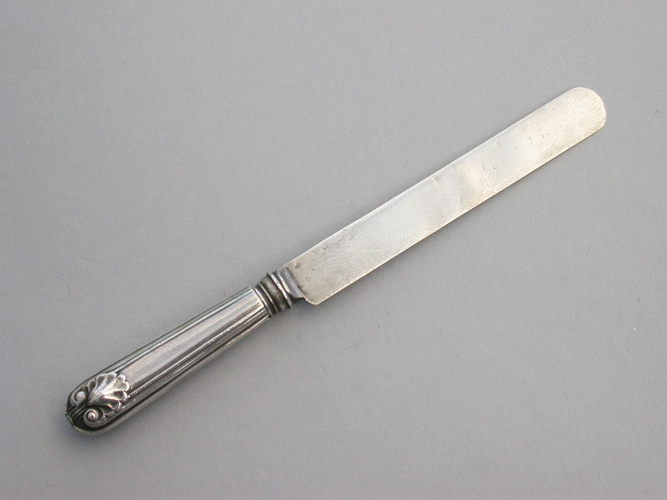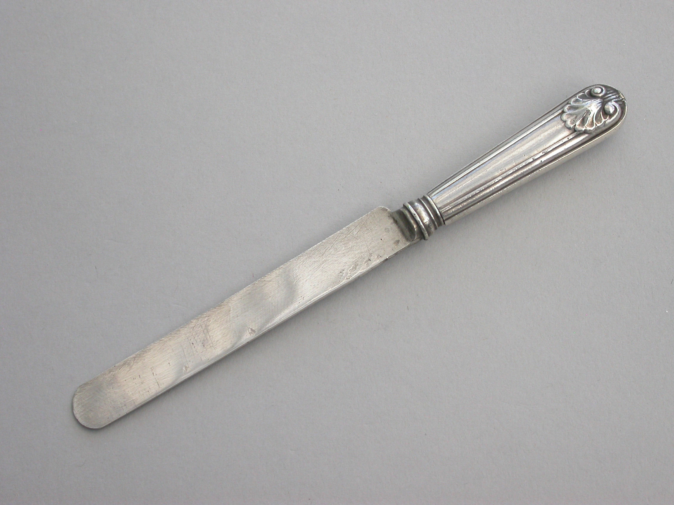 A rare Victorian novelty silver telescopic Propelling Pencil, made in the form of a Dessert Knife with Old English thread and shell pattern handle.