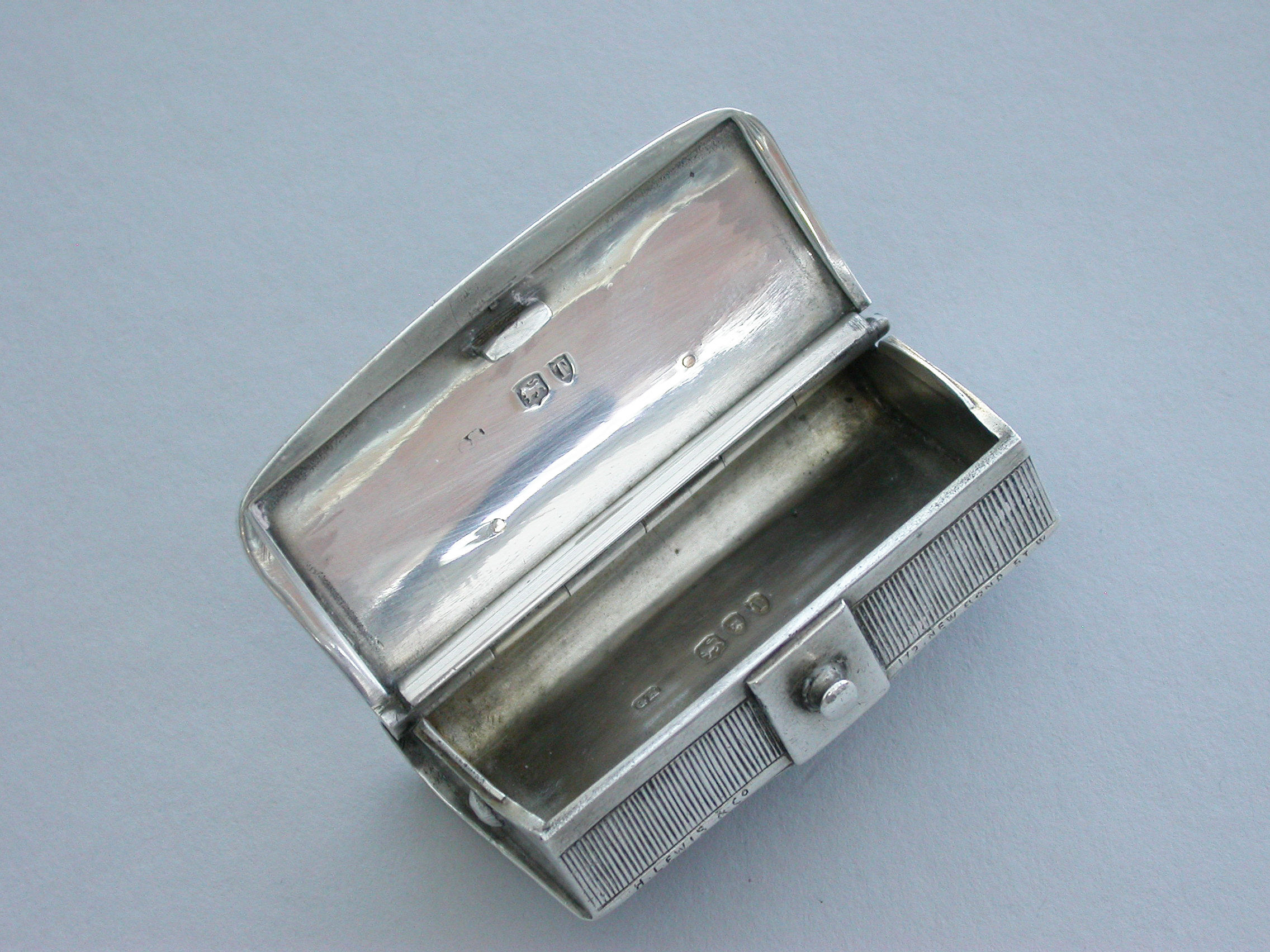 Victorian Novelty Silver 'military leather cross-belt pouch' Vesta Case