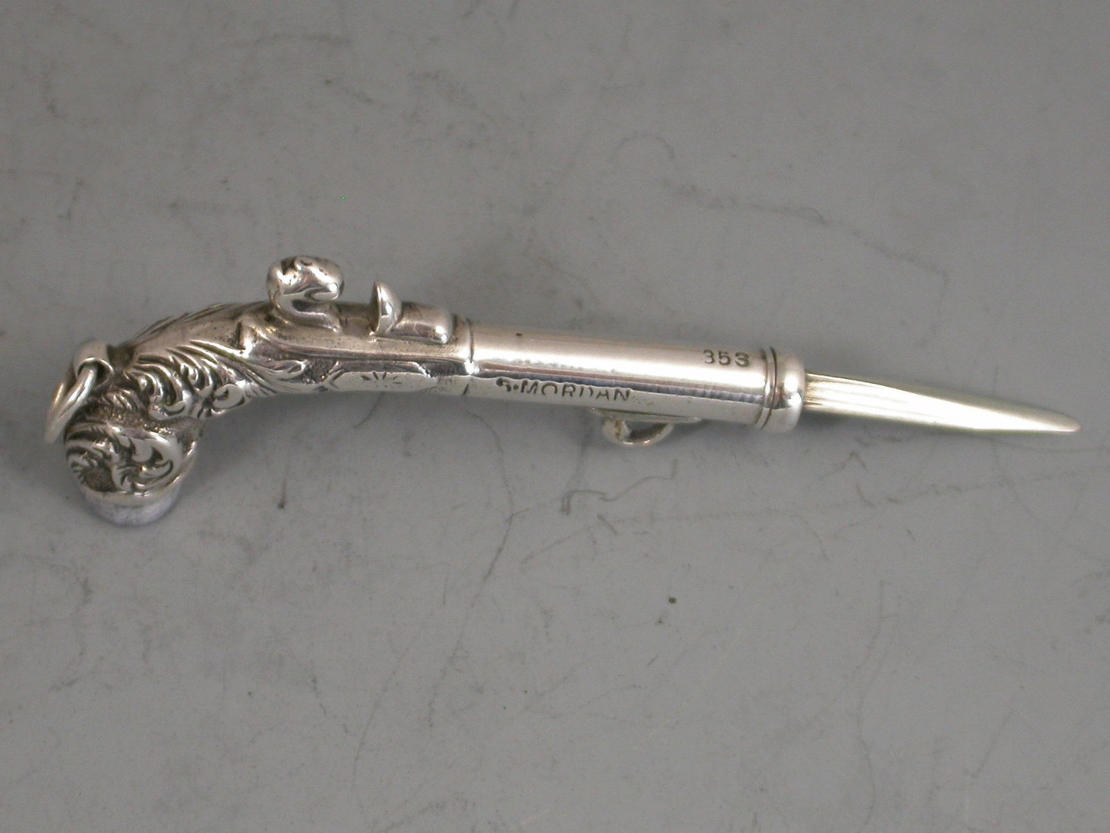 Victorian Novelty Silver Percussion Pistol Toothpick