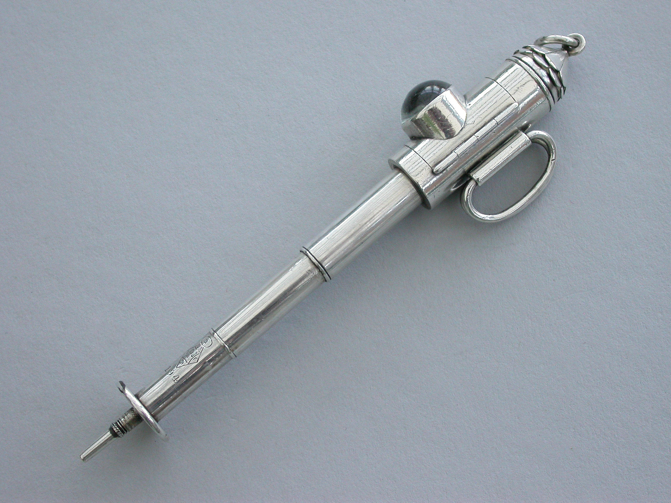 Victorian Novelty Silver Police Bullseye Lantern Telescopic Propelling Pencil