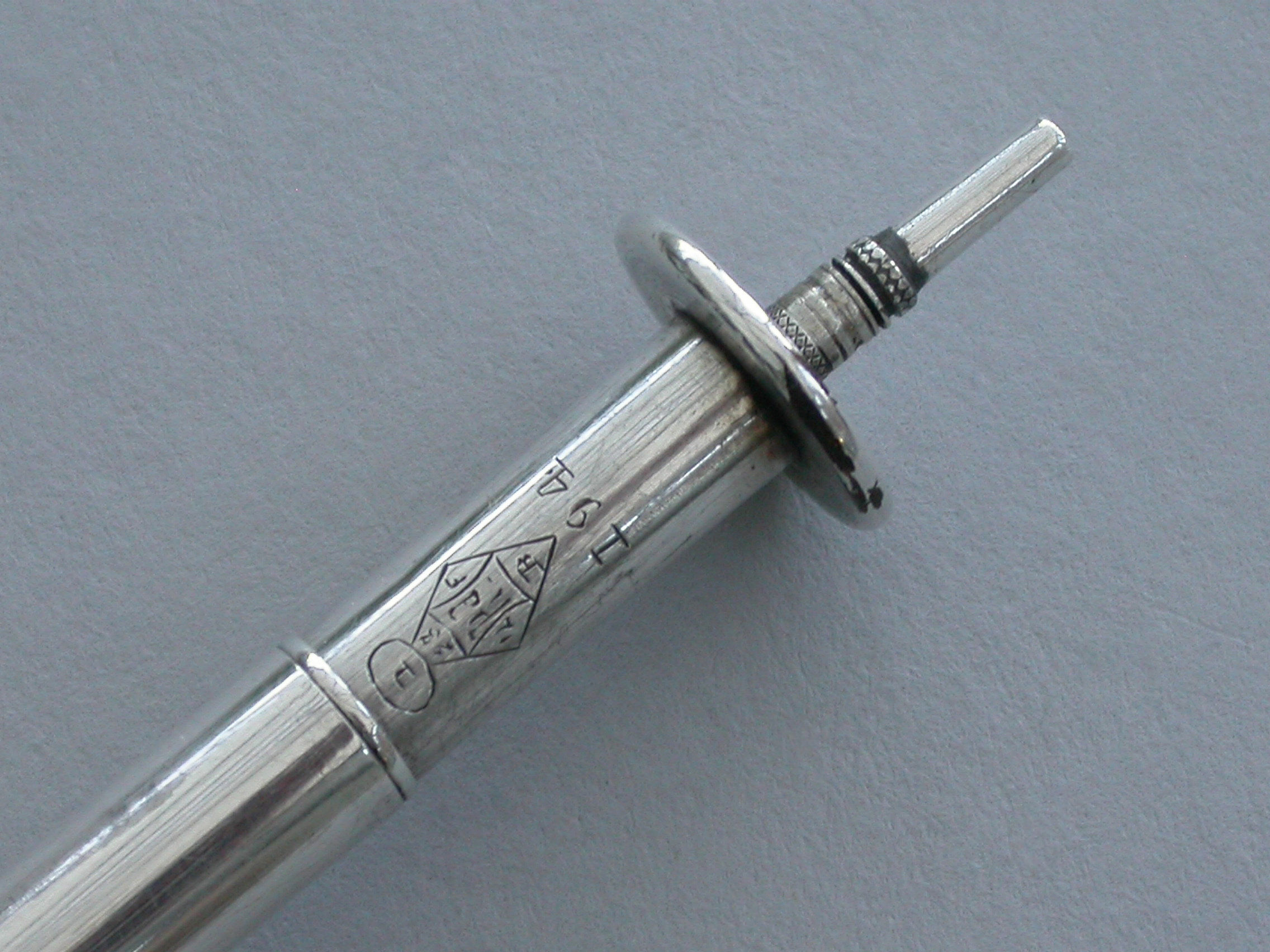 Almost certainly made by Sampson Mordan & Co for the Retailer's Walter Thornhill & Co, London c1873.Stamped: Thornhill, and with a diamond registration mark for 23rd October 1873.