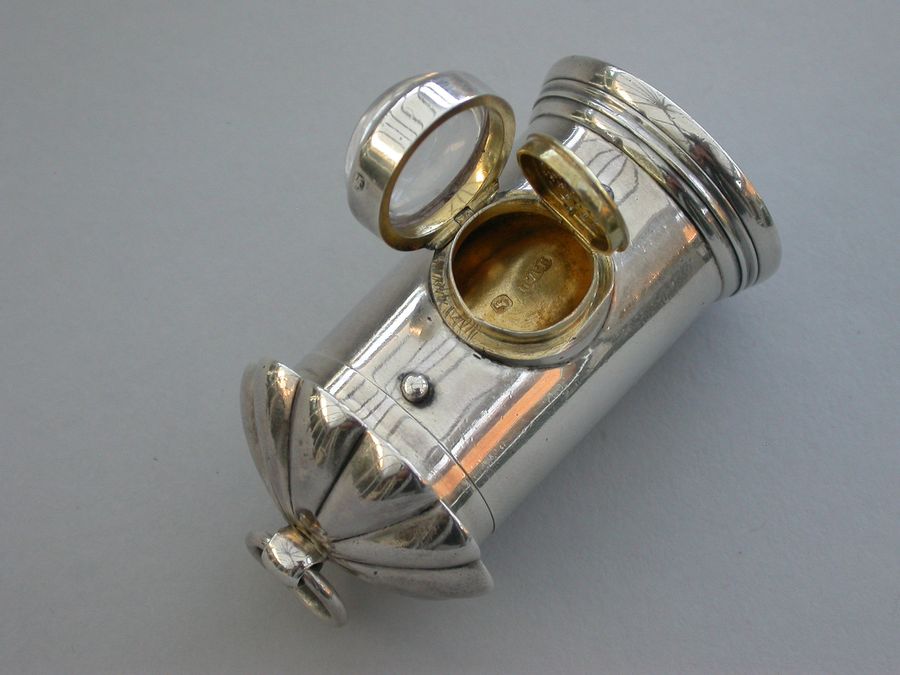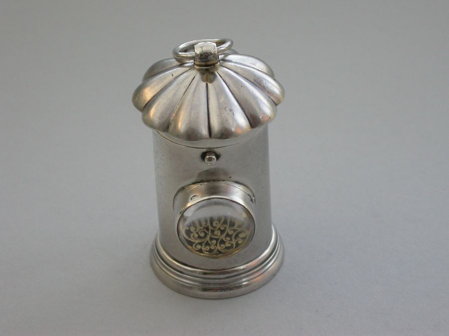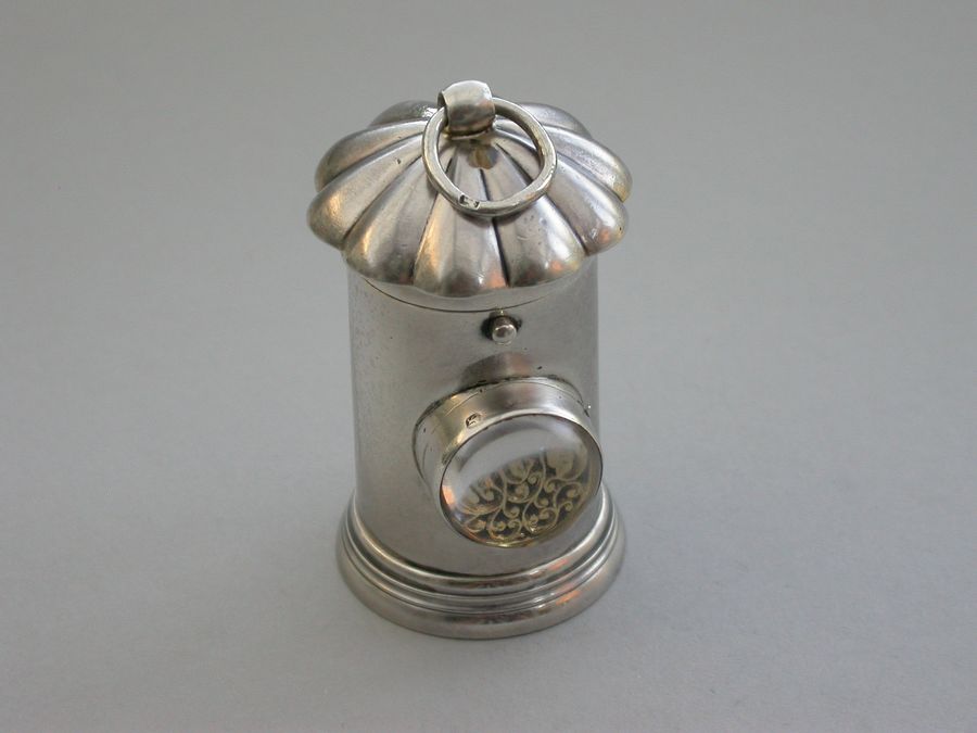 Victorian Novelty Silver Policeman's Bullseye Lantern Vinaigrette / Sewing Etui