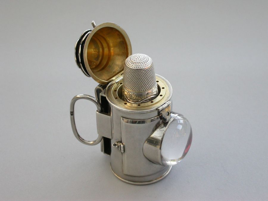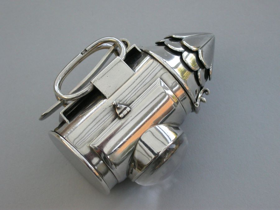 Victorian Novelty Silver Policeman's Bullseye Lantern Vinaigrette / Sewing Etui