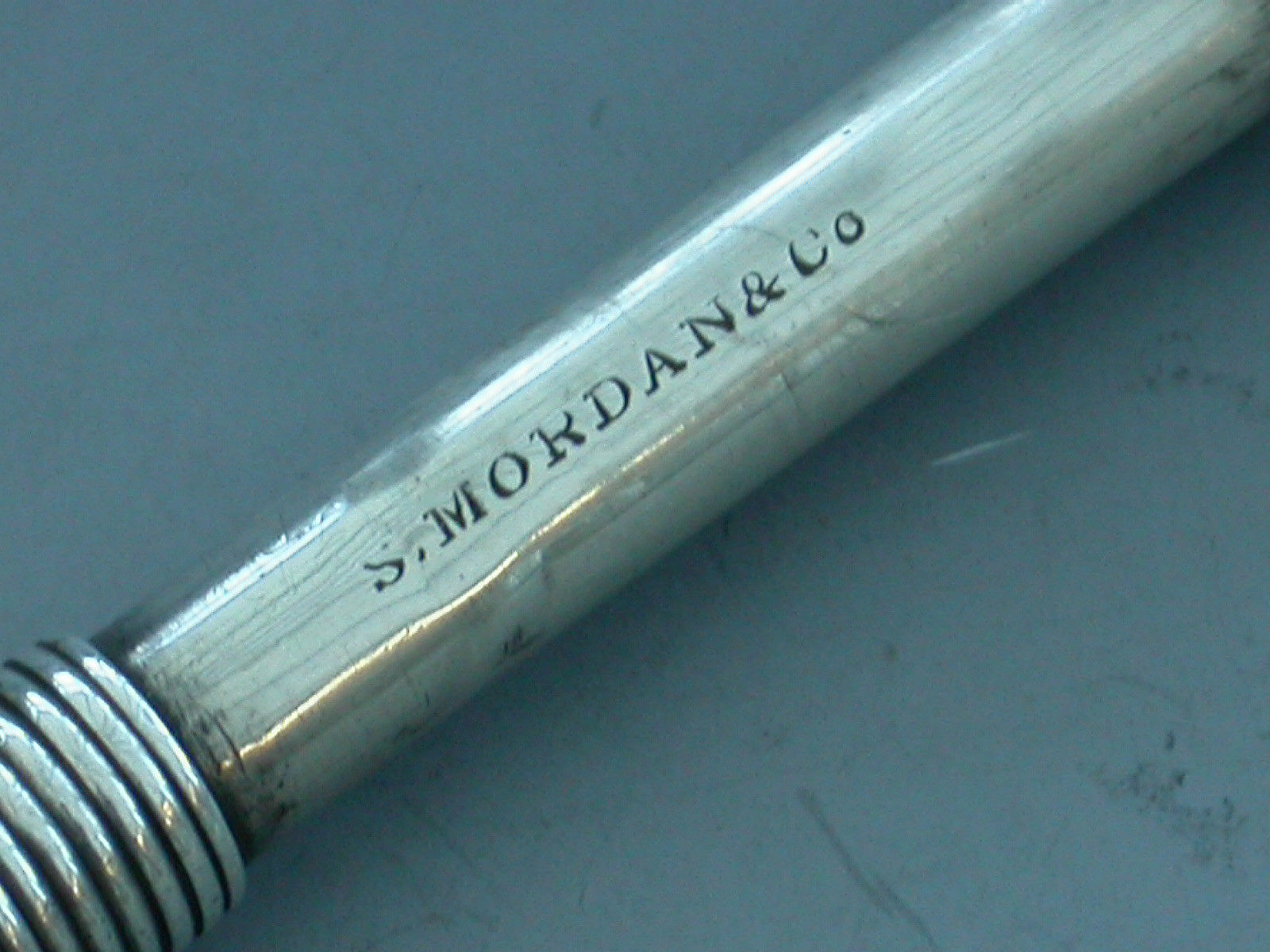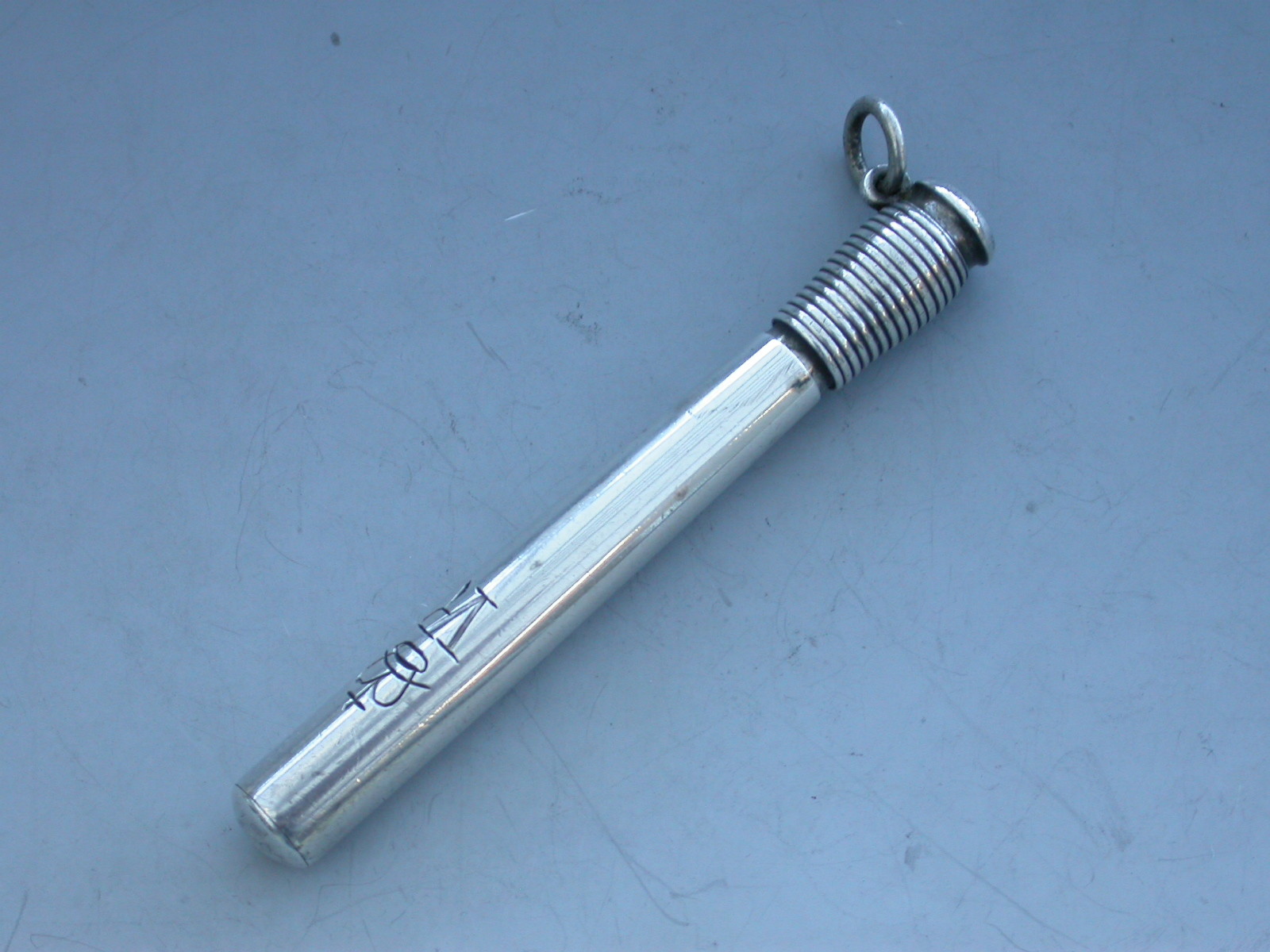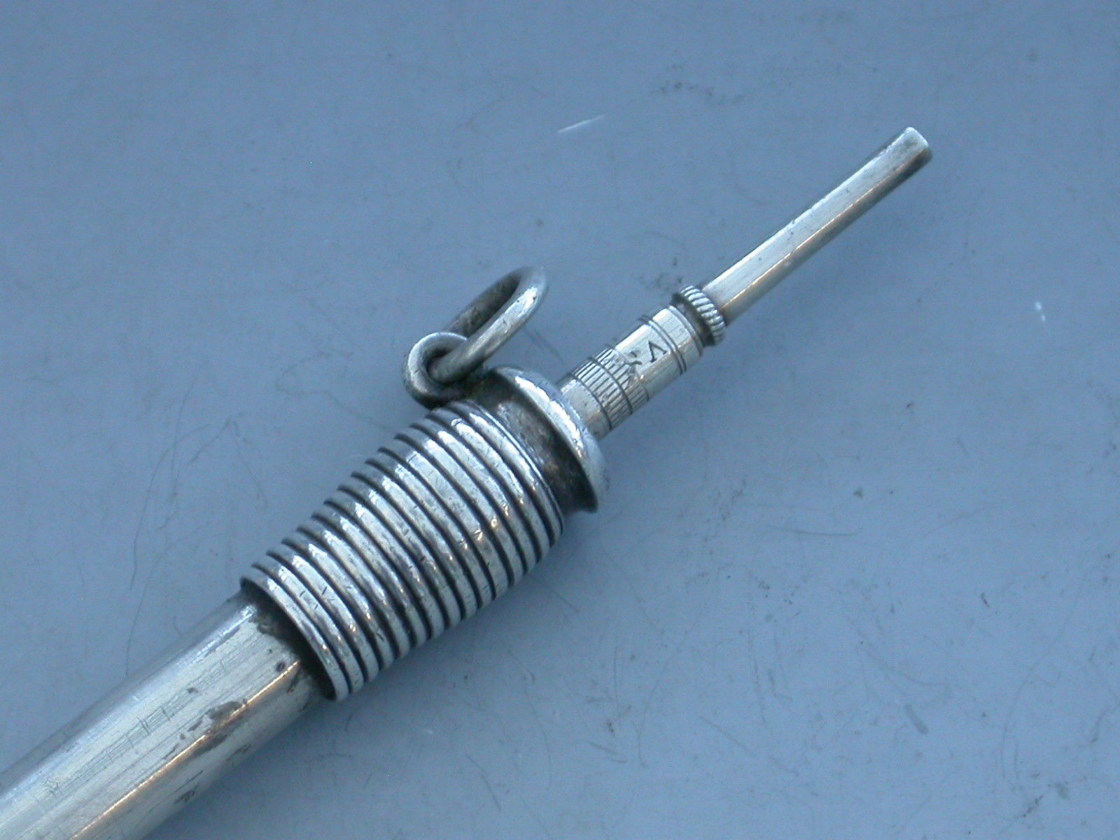 A rare and fine quality novelty silver telescopic propelling pencil made in the form of a Policeman's Truncheon, the barrel engraved with the cypher of Queen Victoria.
