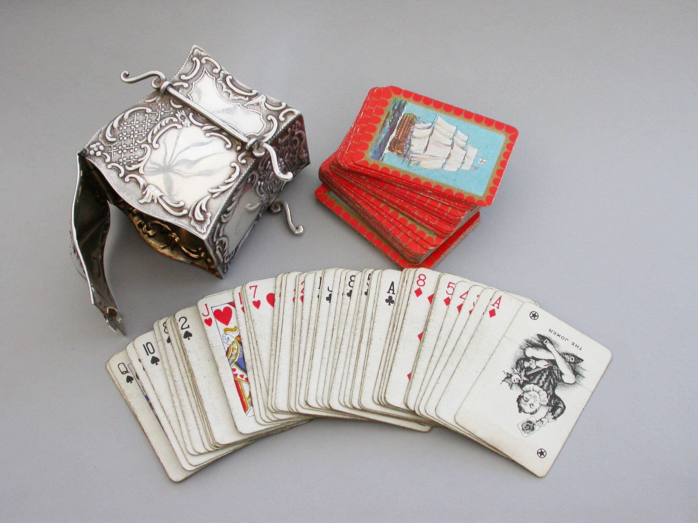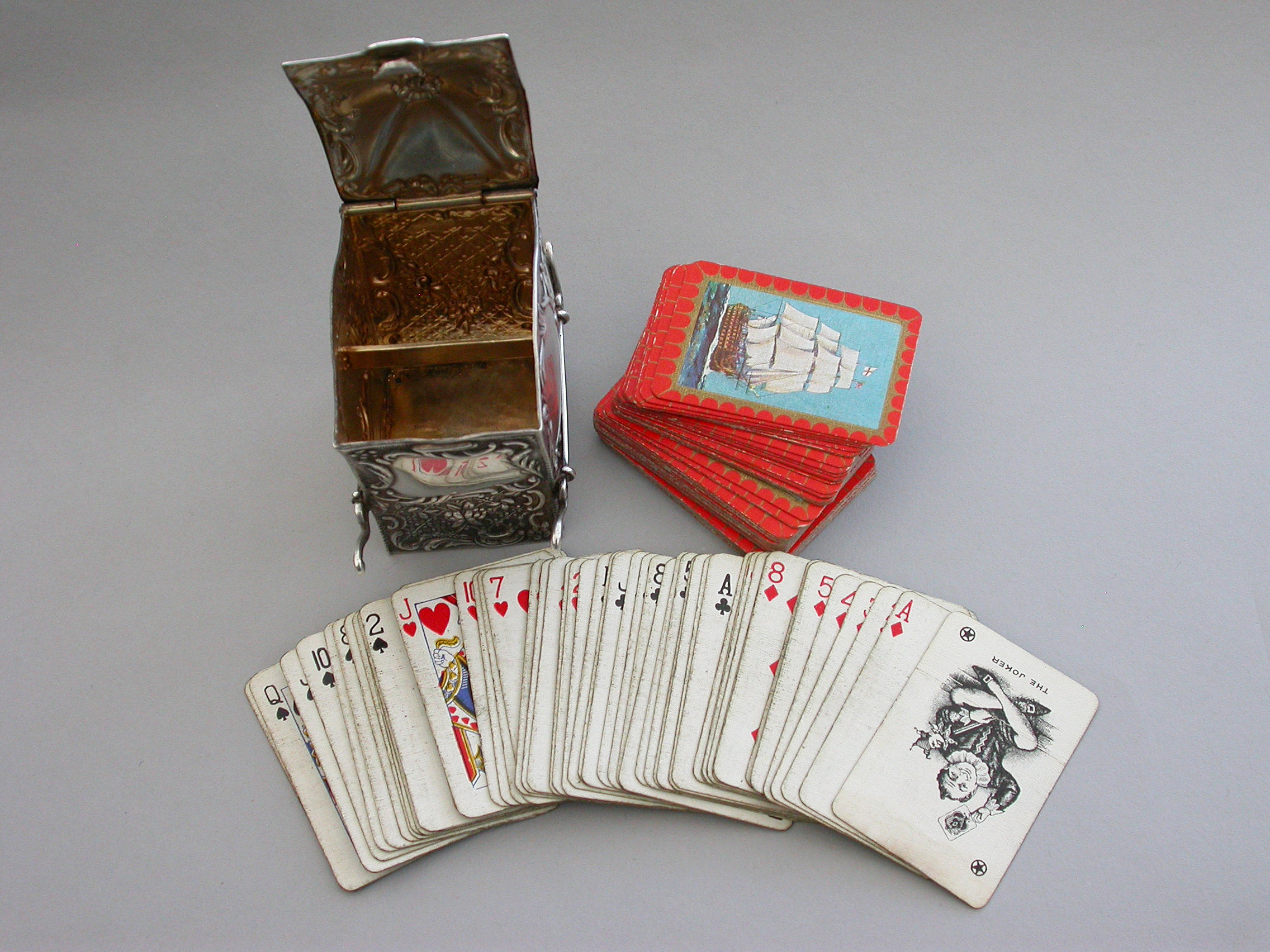 Victorian Novelty Silver Sedan Chair Twin Pack Playing Card Box