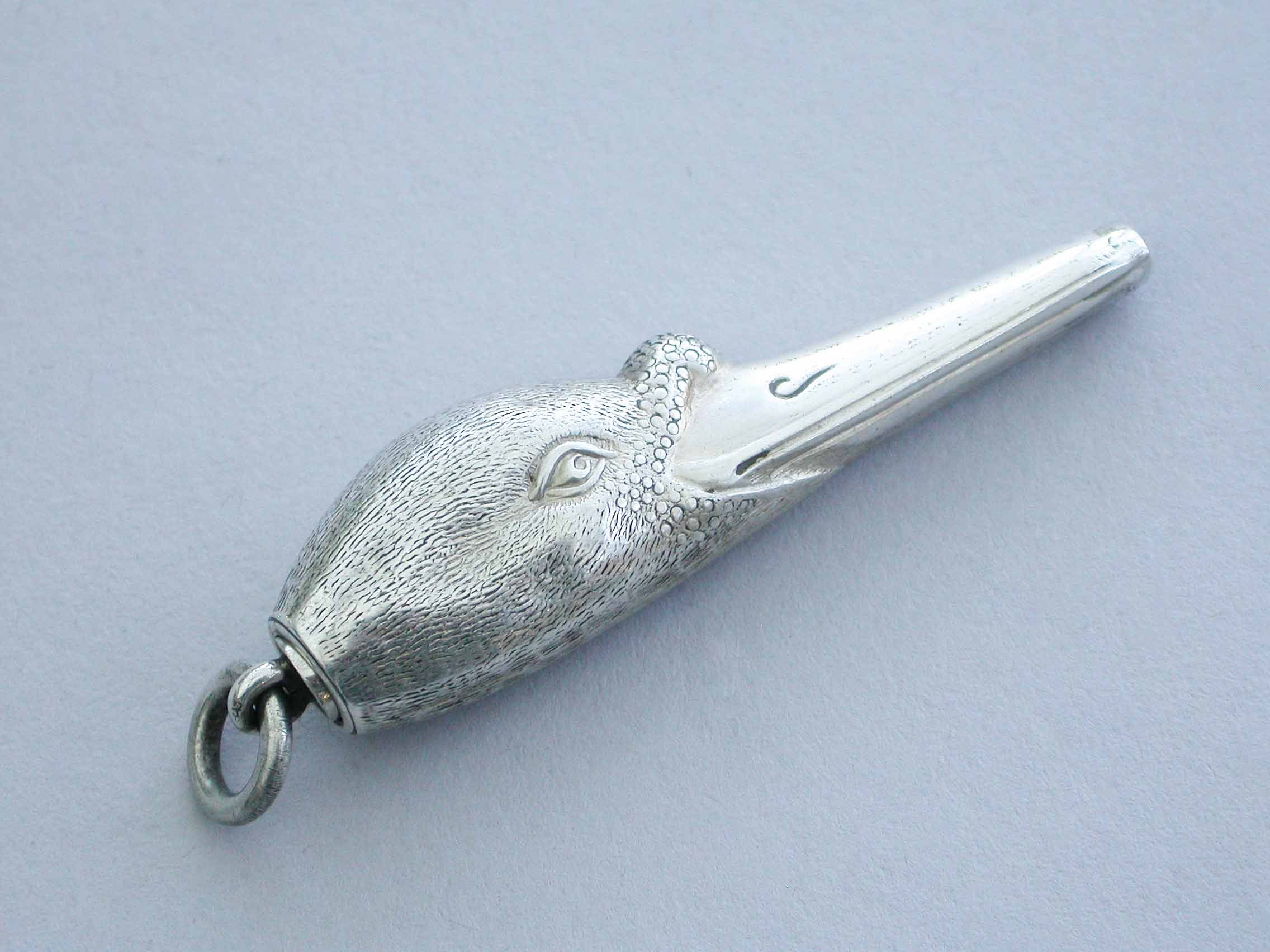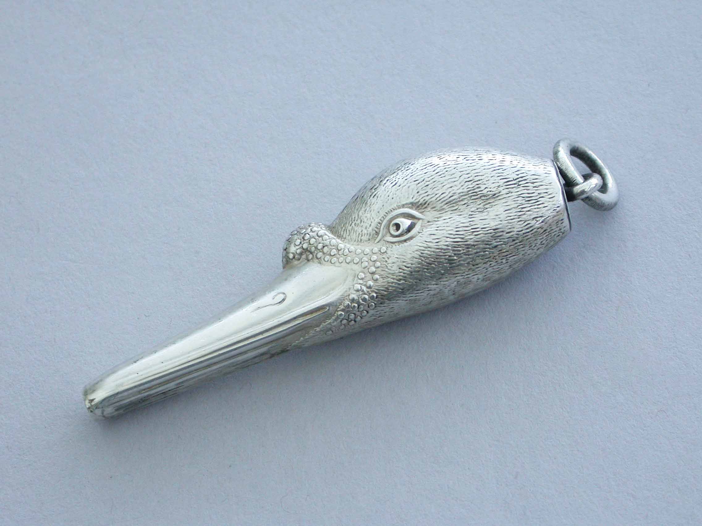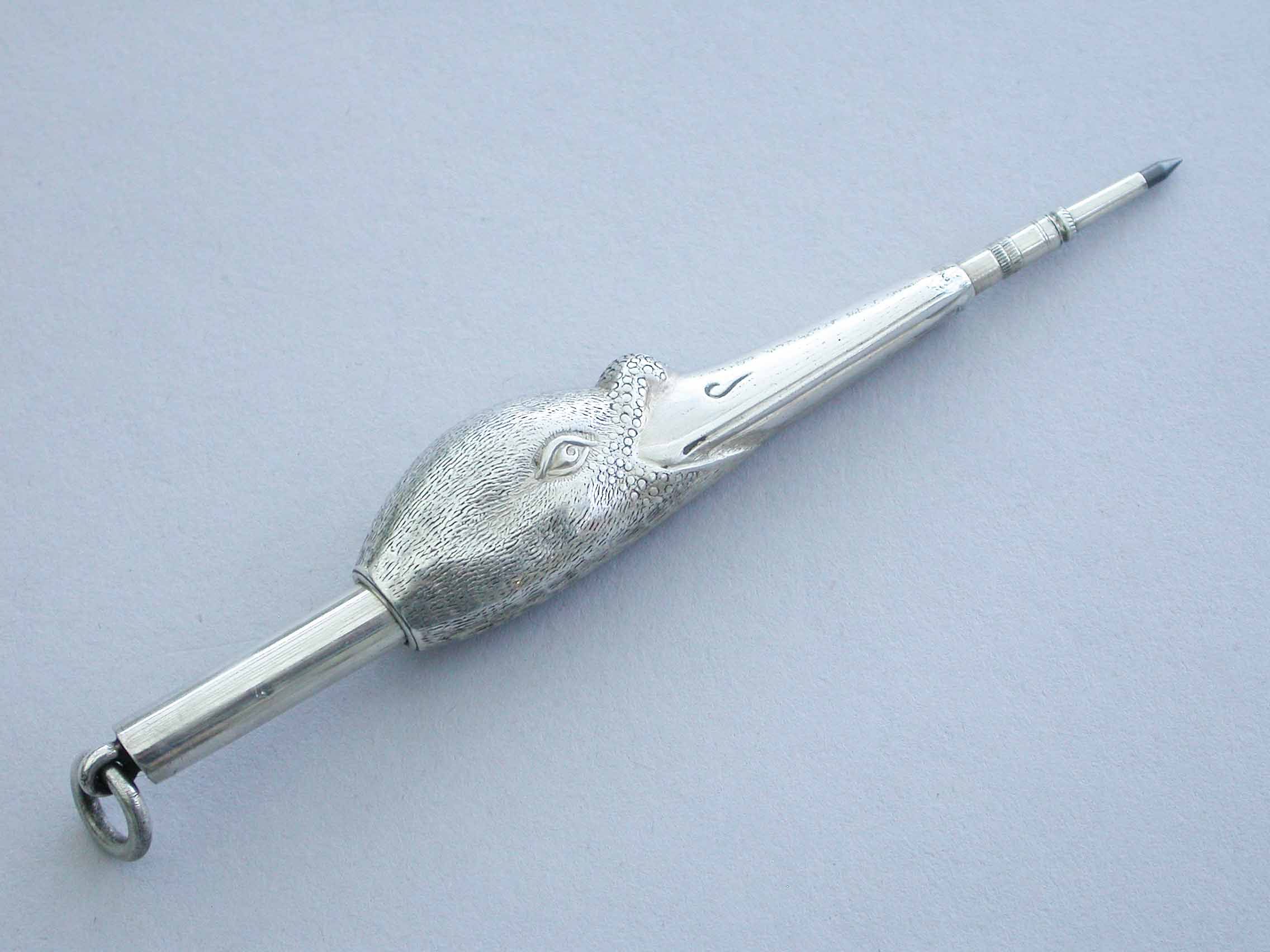A fine and rare Victorian novelty silver telescopic Propelling Pencil made in the form of a Swans Head, with attached suspension ring.