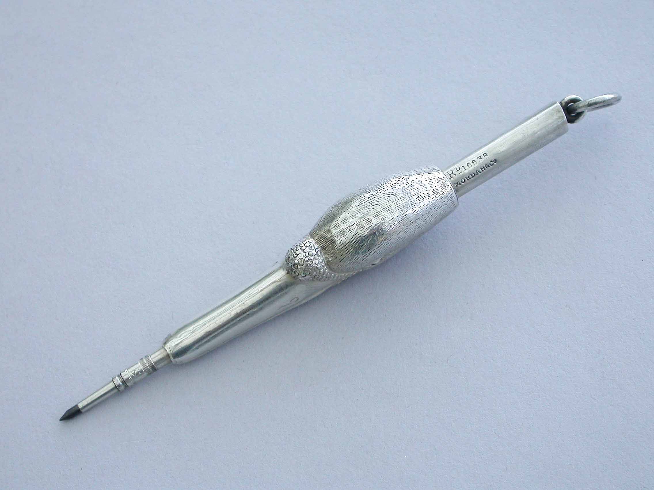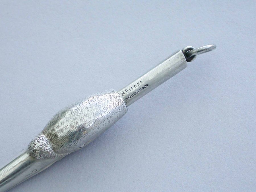By Sampson Mordan, London c1884. Also stamped with registered design number: 16638.