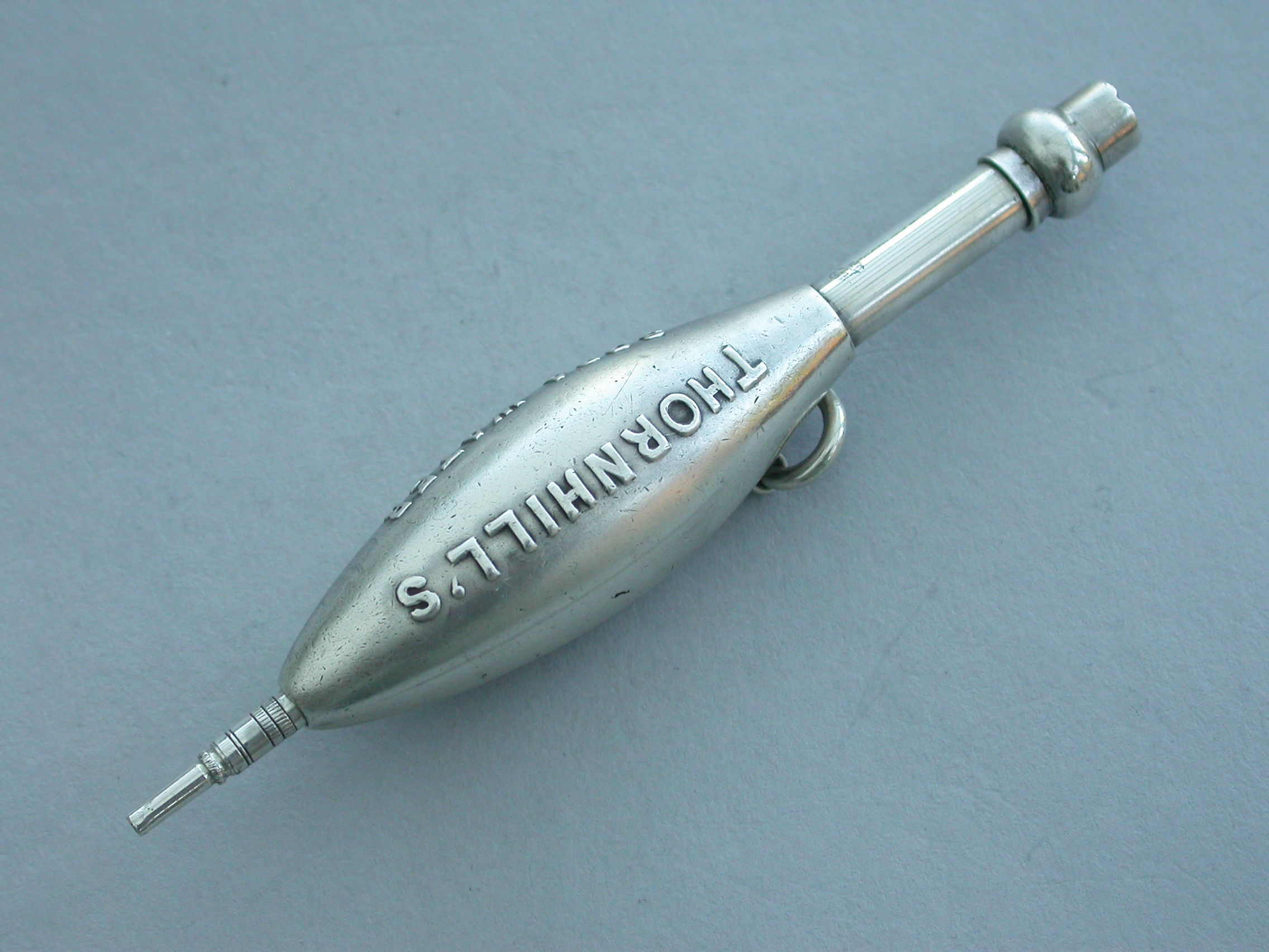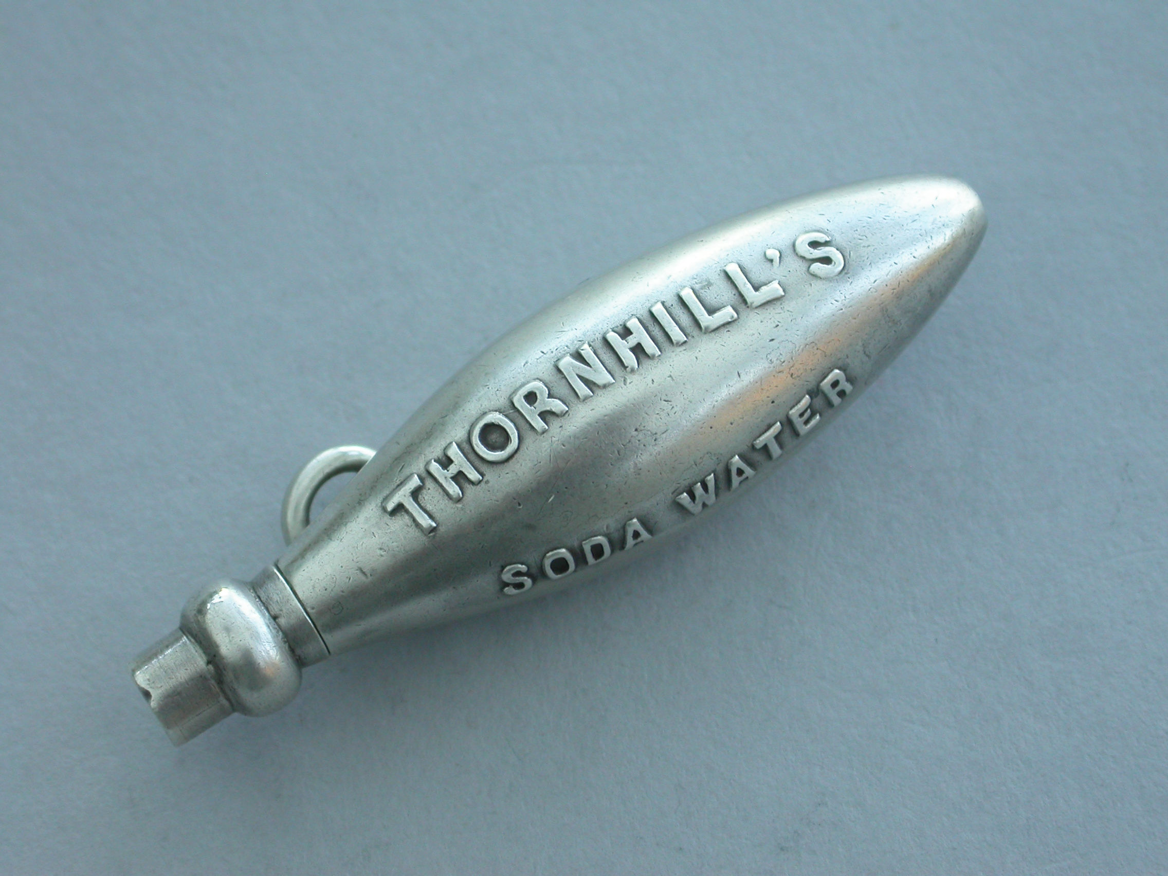 A rare Victorian novelty silver Propelling Pencil made in the form of a Thornhill's Soda Water Bottle.