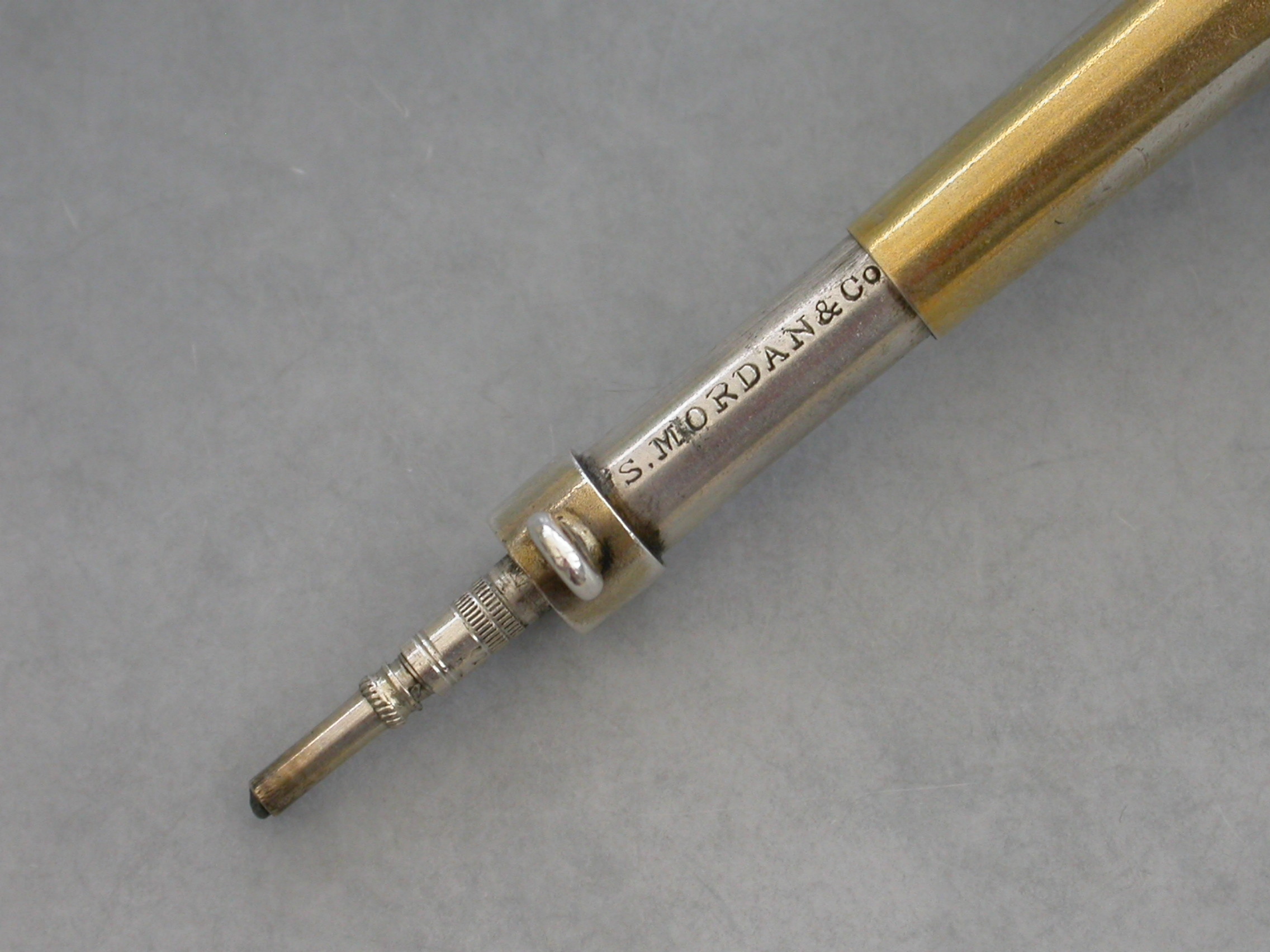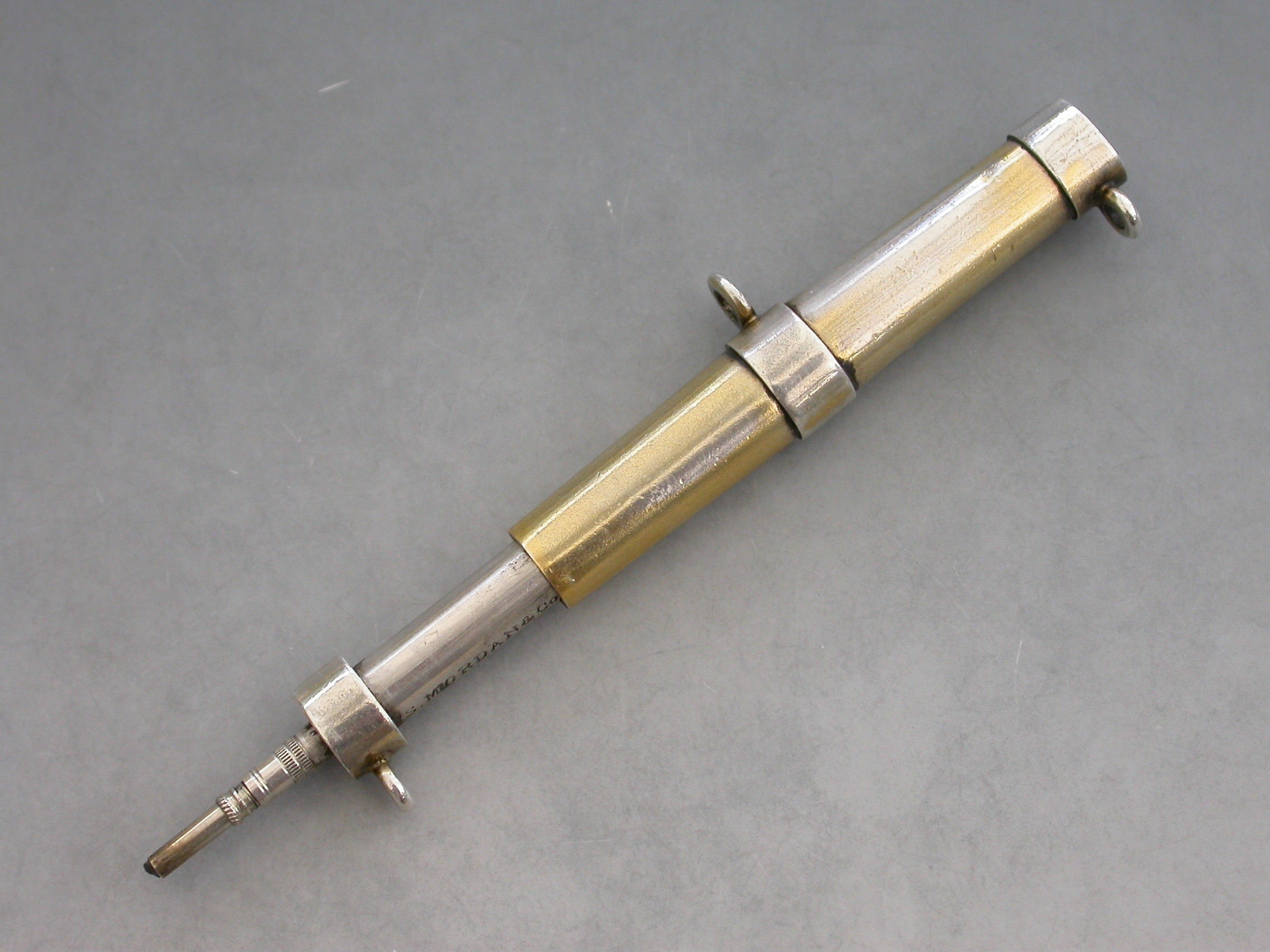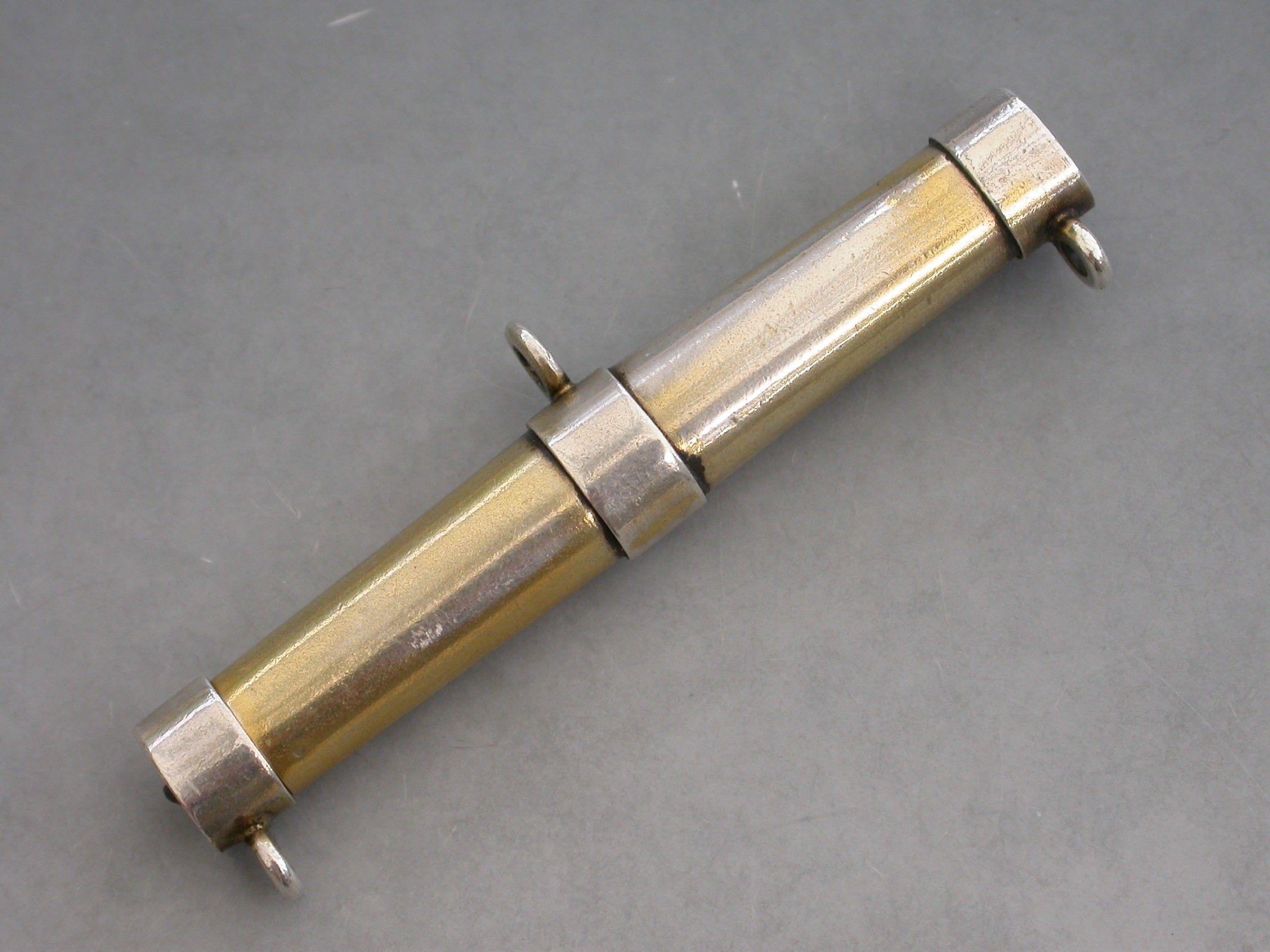 A rare Victorian novelty silver and partly gilded Propelling Pencil made in the form of a Draft Pole or Yoke (for separating and linking a pair of horses to a cart).