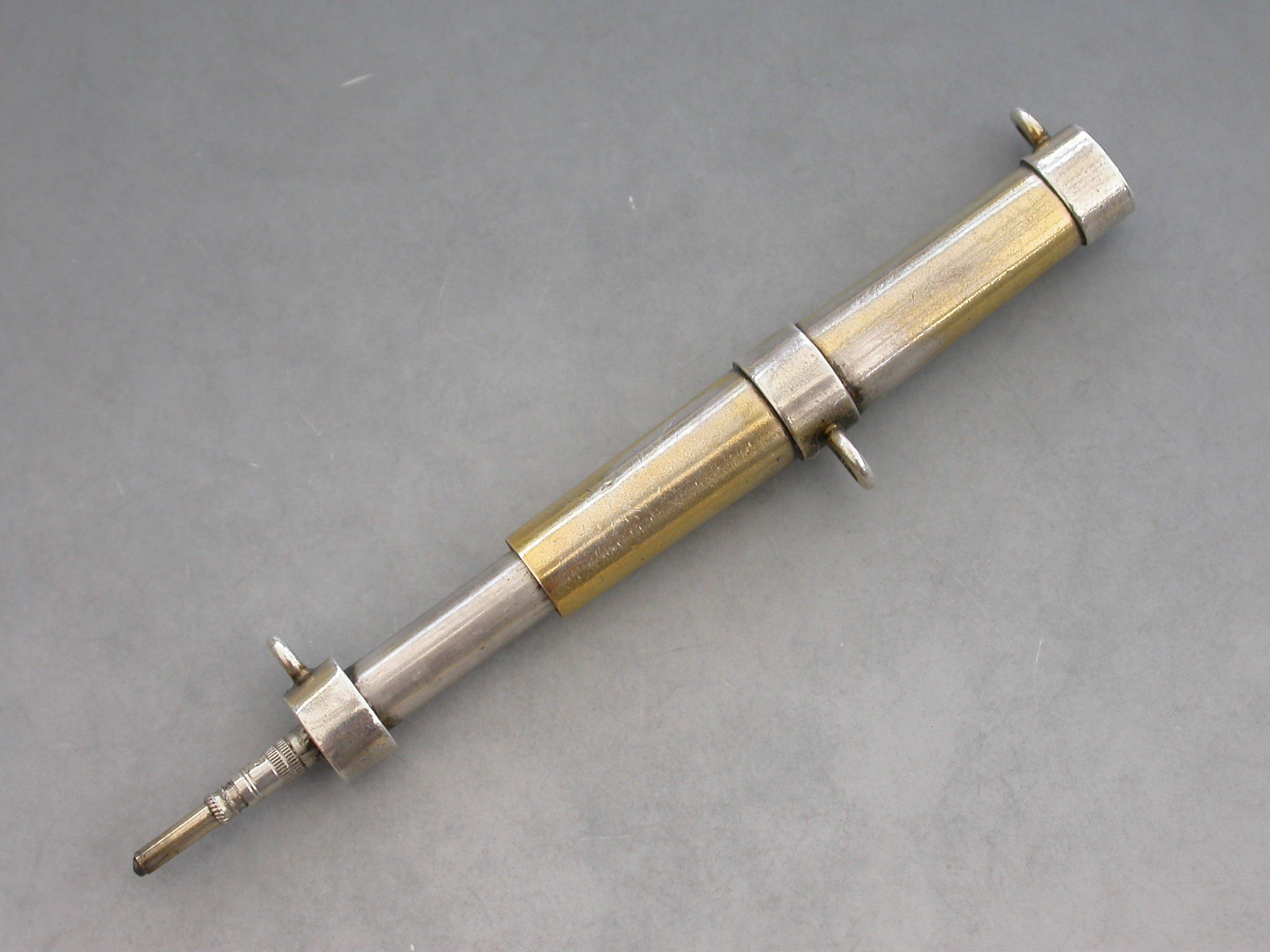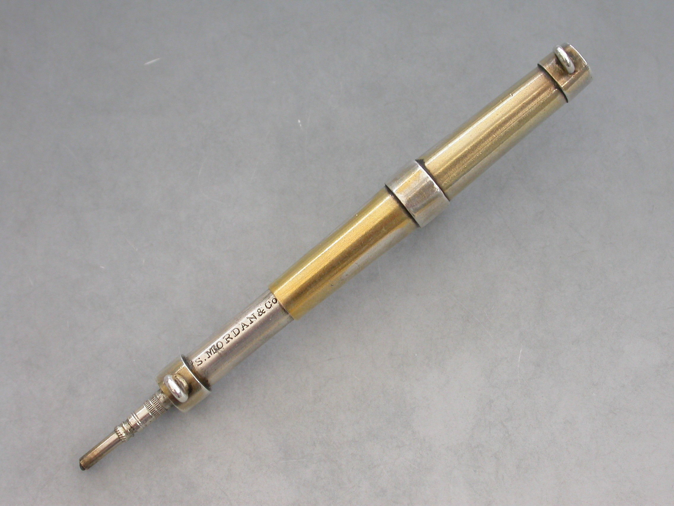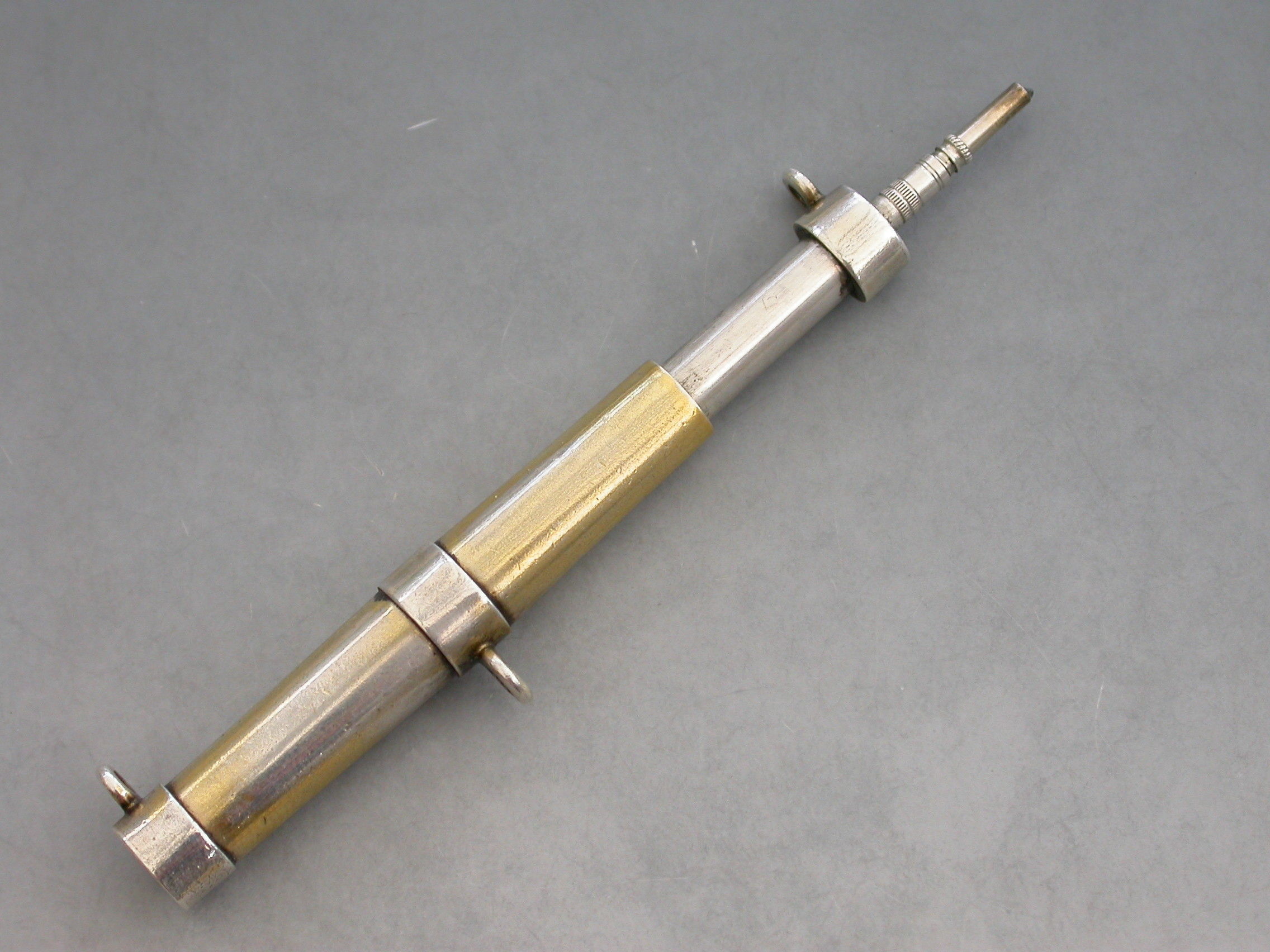 A rare Victorian novelty silver and partly gilded Propelling Pencil made in the form of a Draft Pole or Yoke (for separating and linking a pair of horses to a cart).
