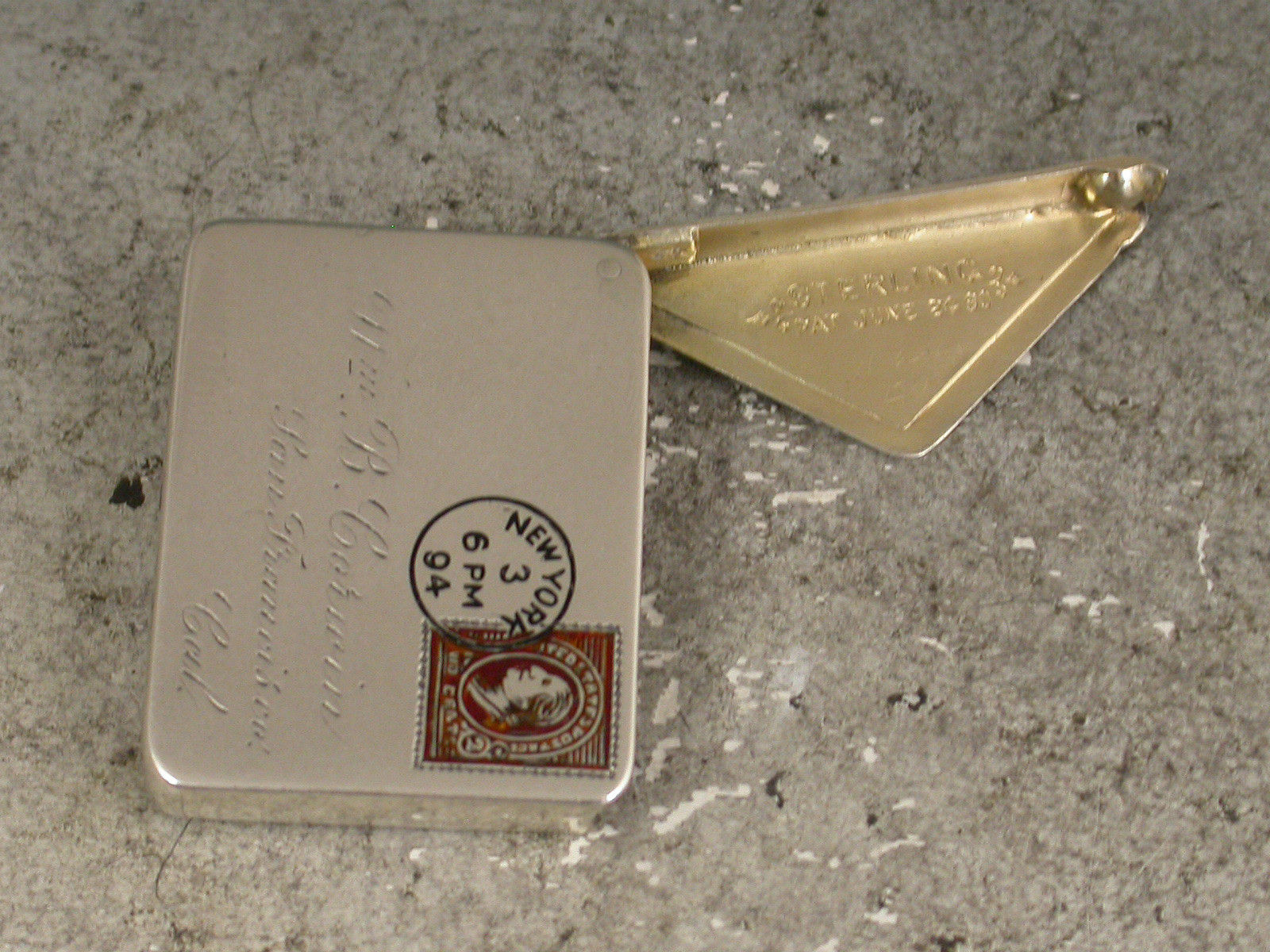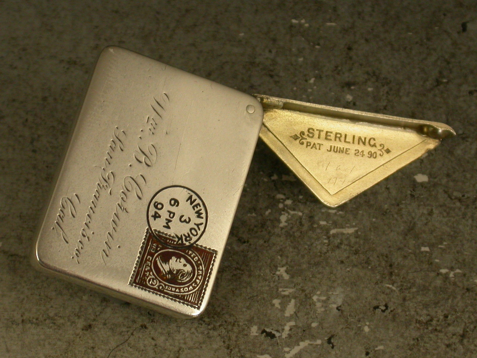 Victorian Patented American Sterling Silver & Enamel Envelope Stamp Case