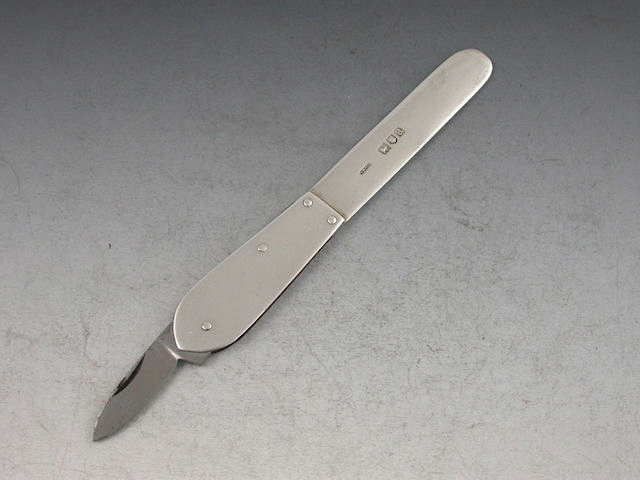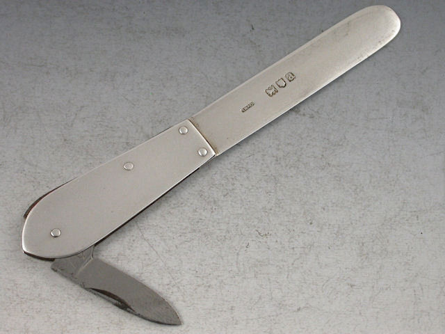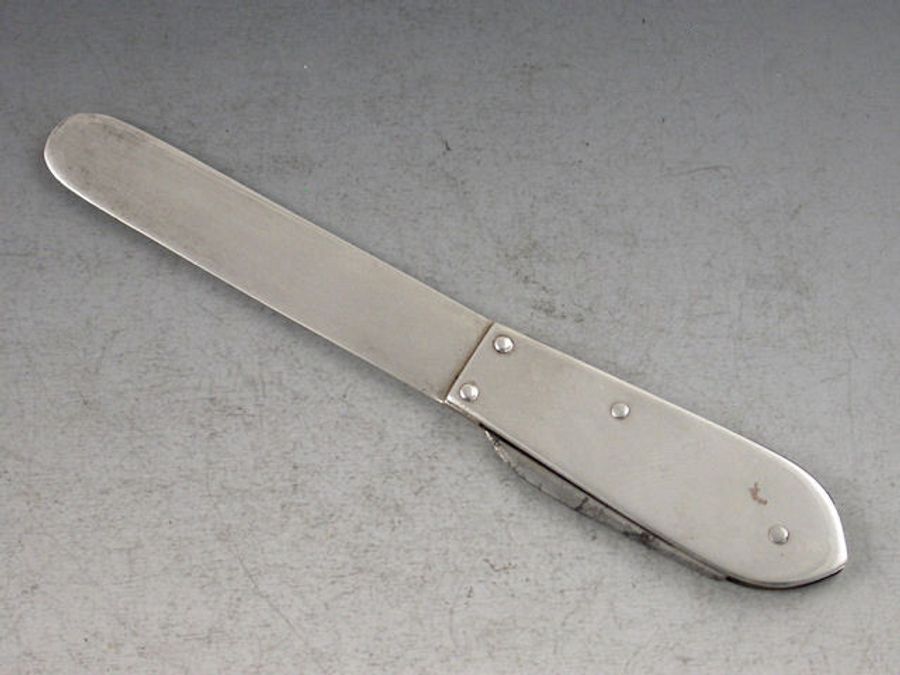 A late Victorian silver Letter Opener with integral steel fold out Pen Knife to handle.