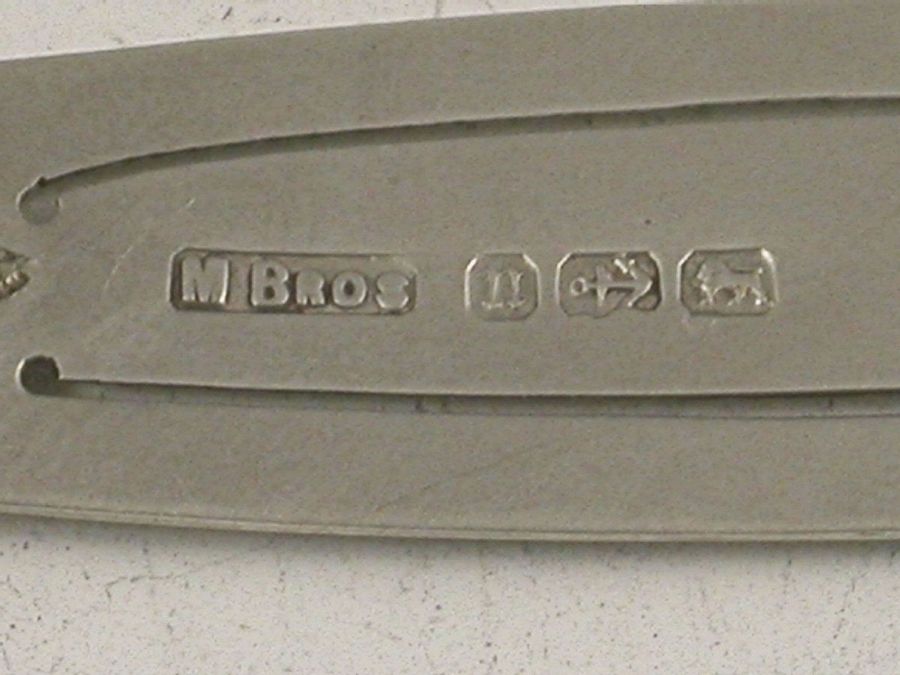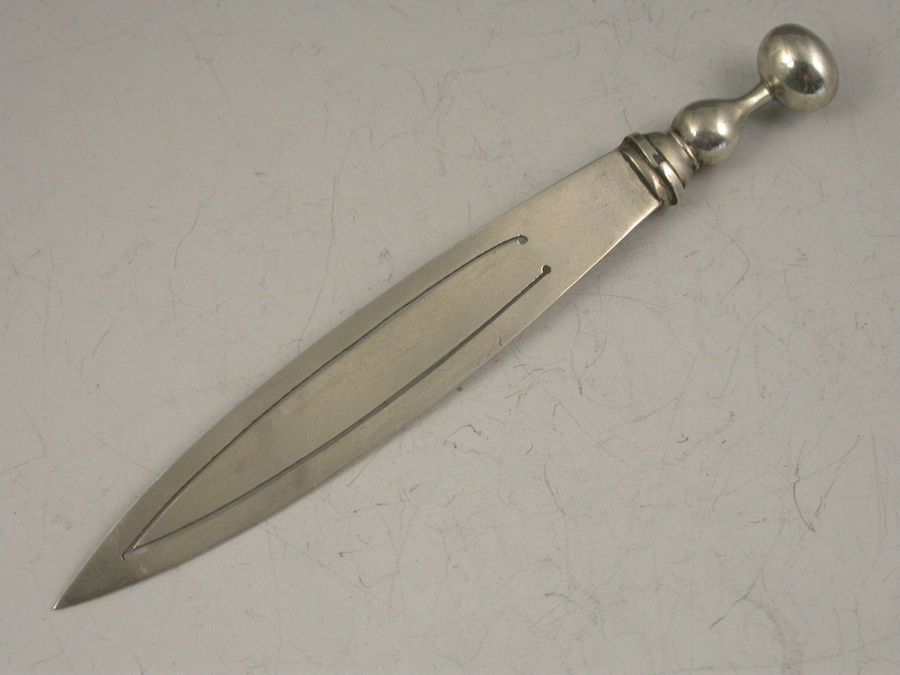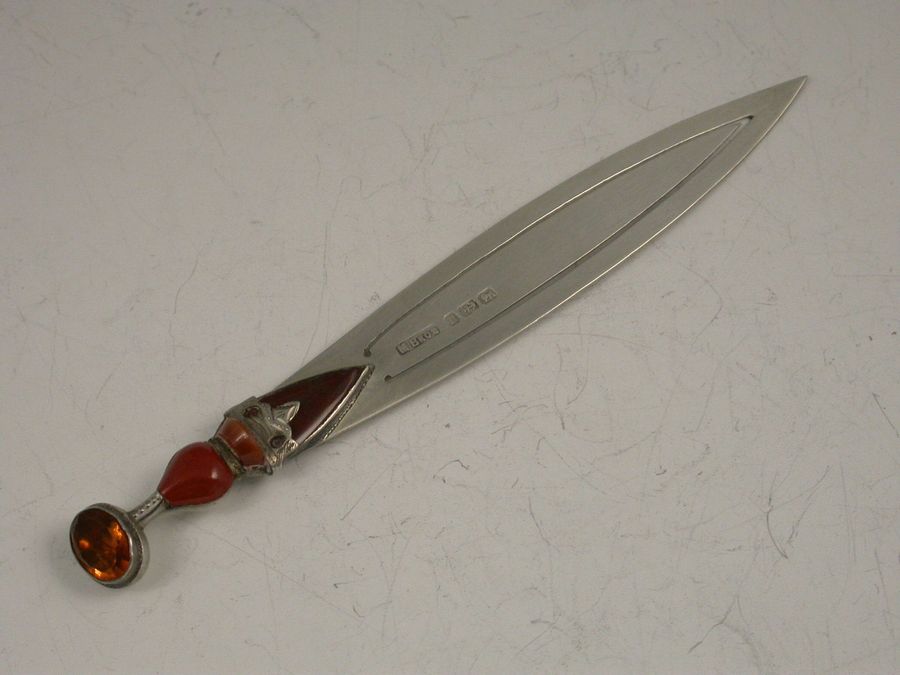 A Victorian silver Bookmark formed as a Scottish Dagger or Dirk and set with three different coloured agate stones and a facetted citrine.