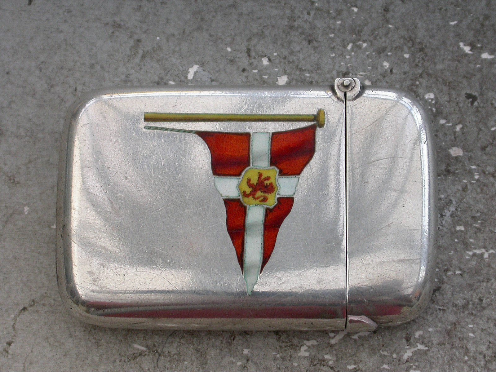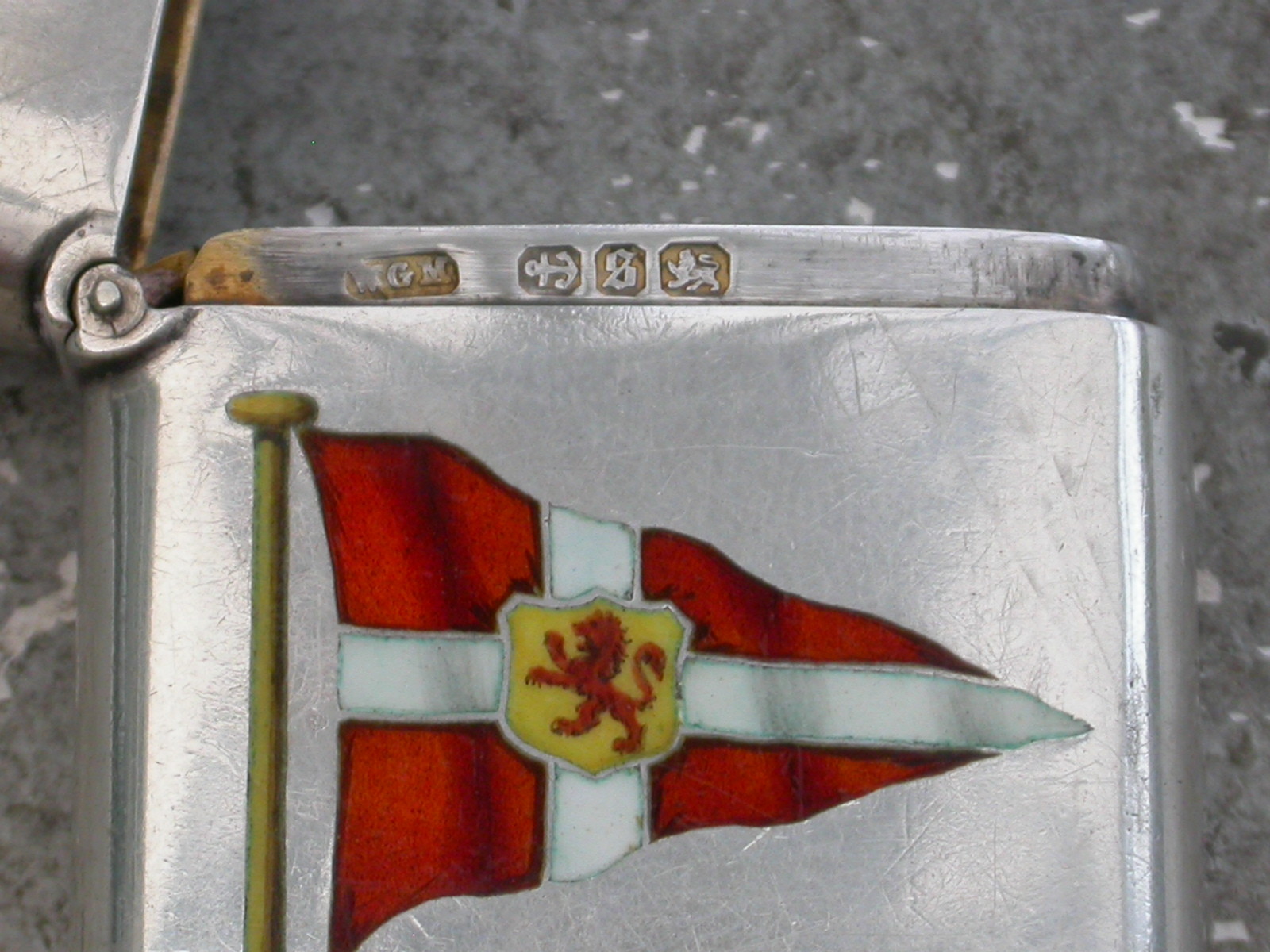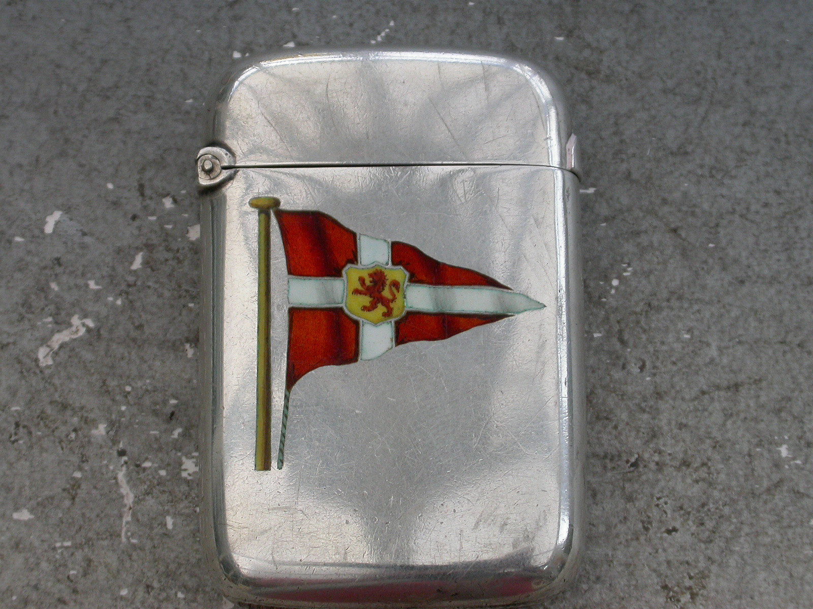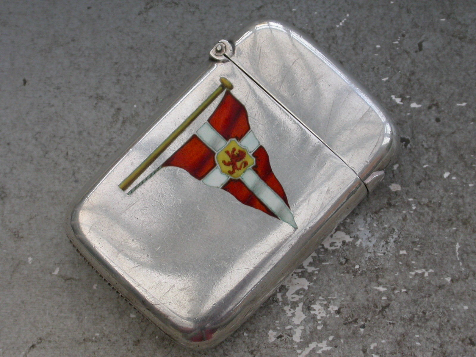A good quality Victorian silver and enamel Vesta Case of rounded rectangular form with hinged flip top lid, the face enamelled with the burgee of The Clyde Corinthian Yacht Club.