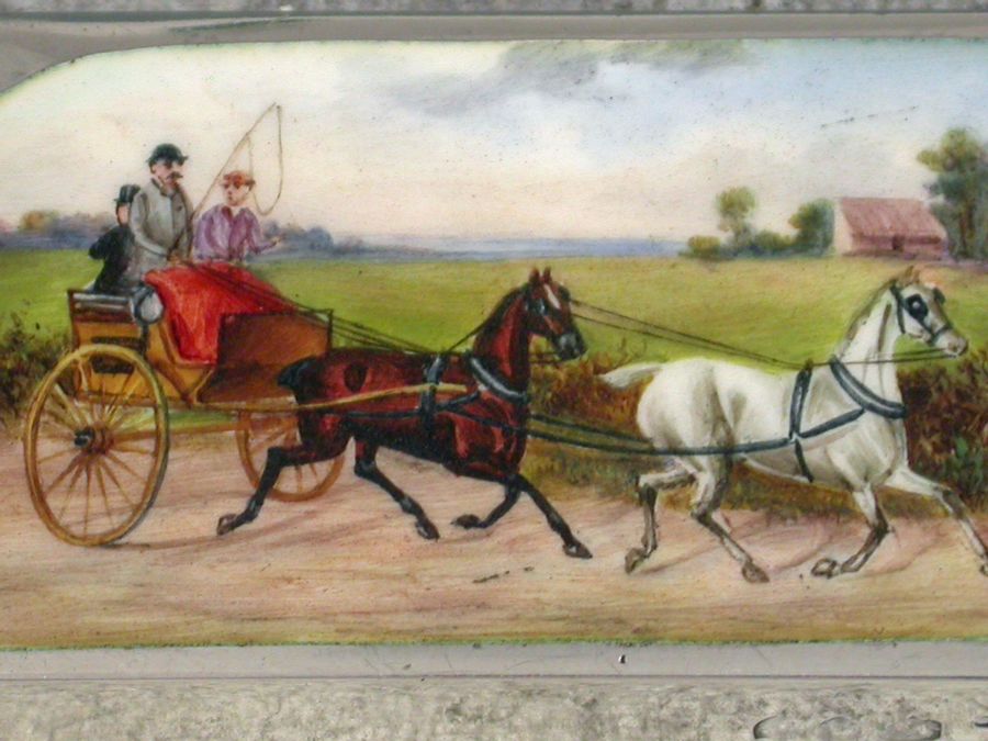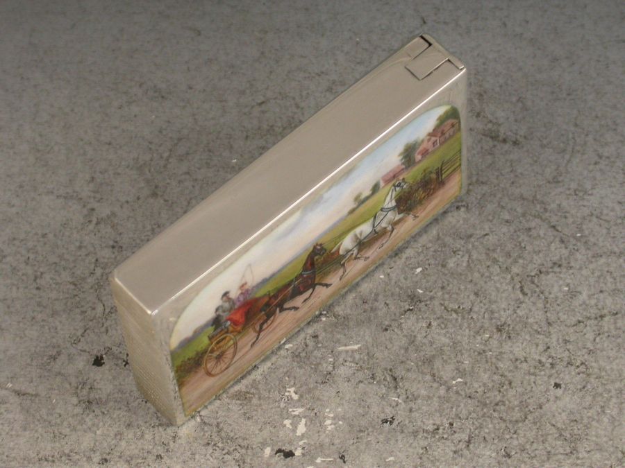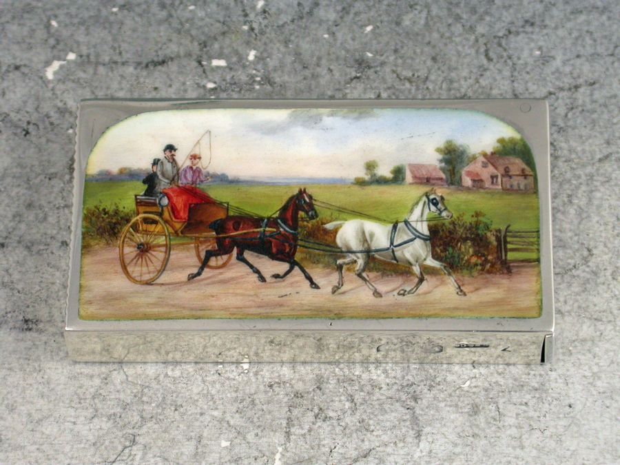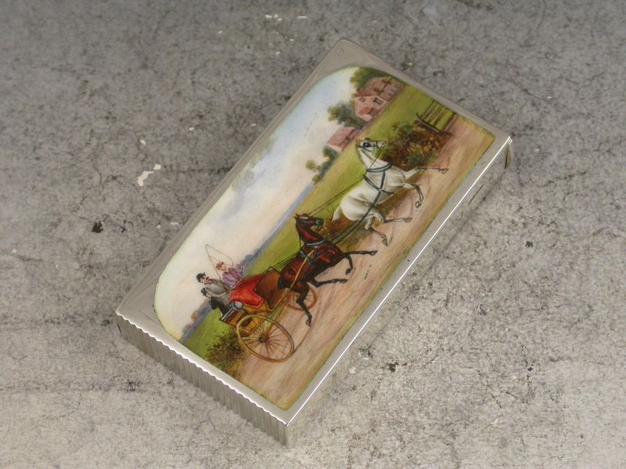 Victorian Silver & Enamel Coaching Scene Vesta Case