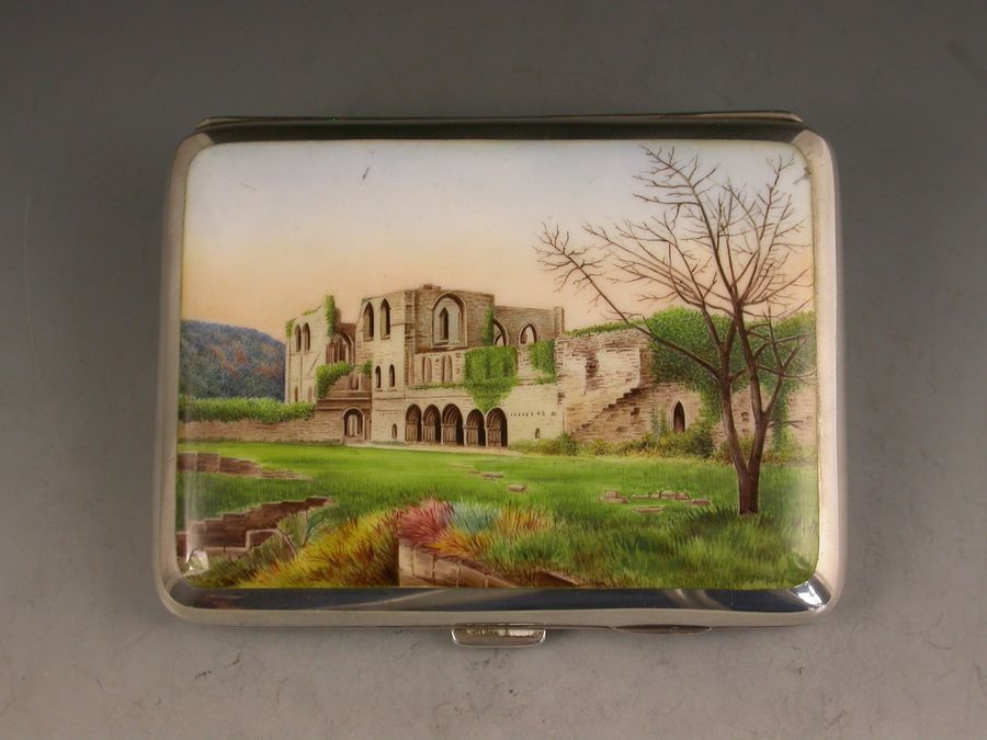 Victorian Silver & Enamel Furness Abbey Cigarette Case