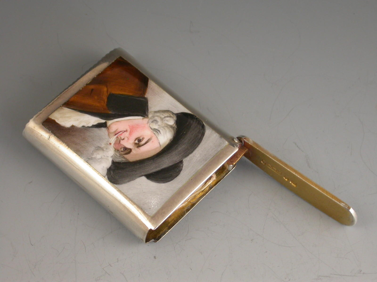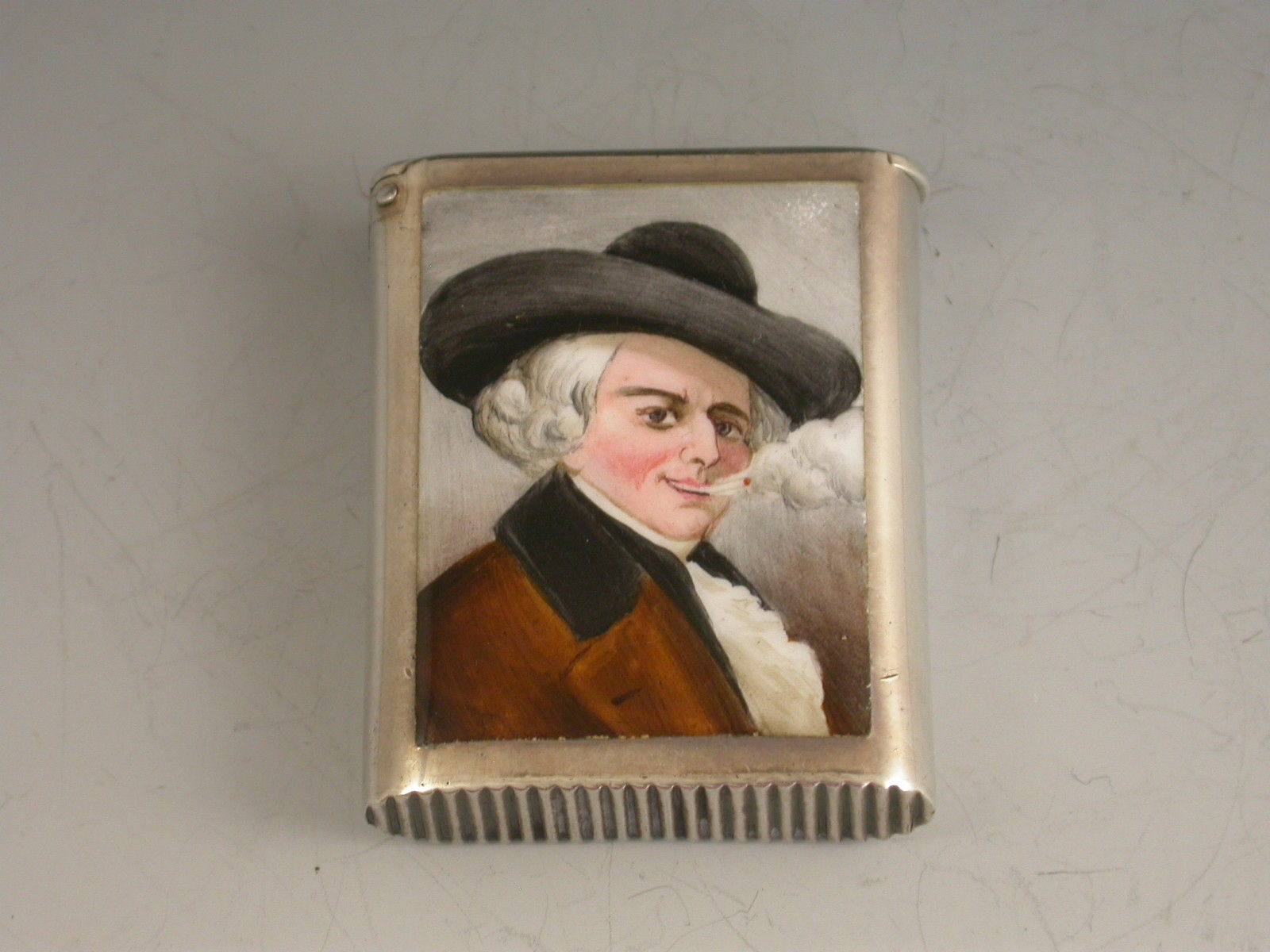 Victorian Silver & Enamel Gentleman Smoking Vesta Case
